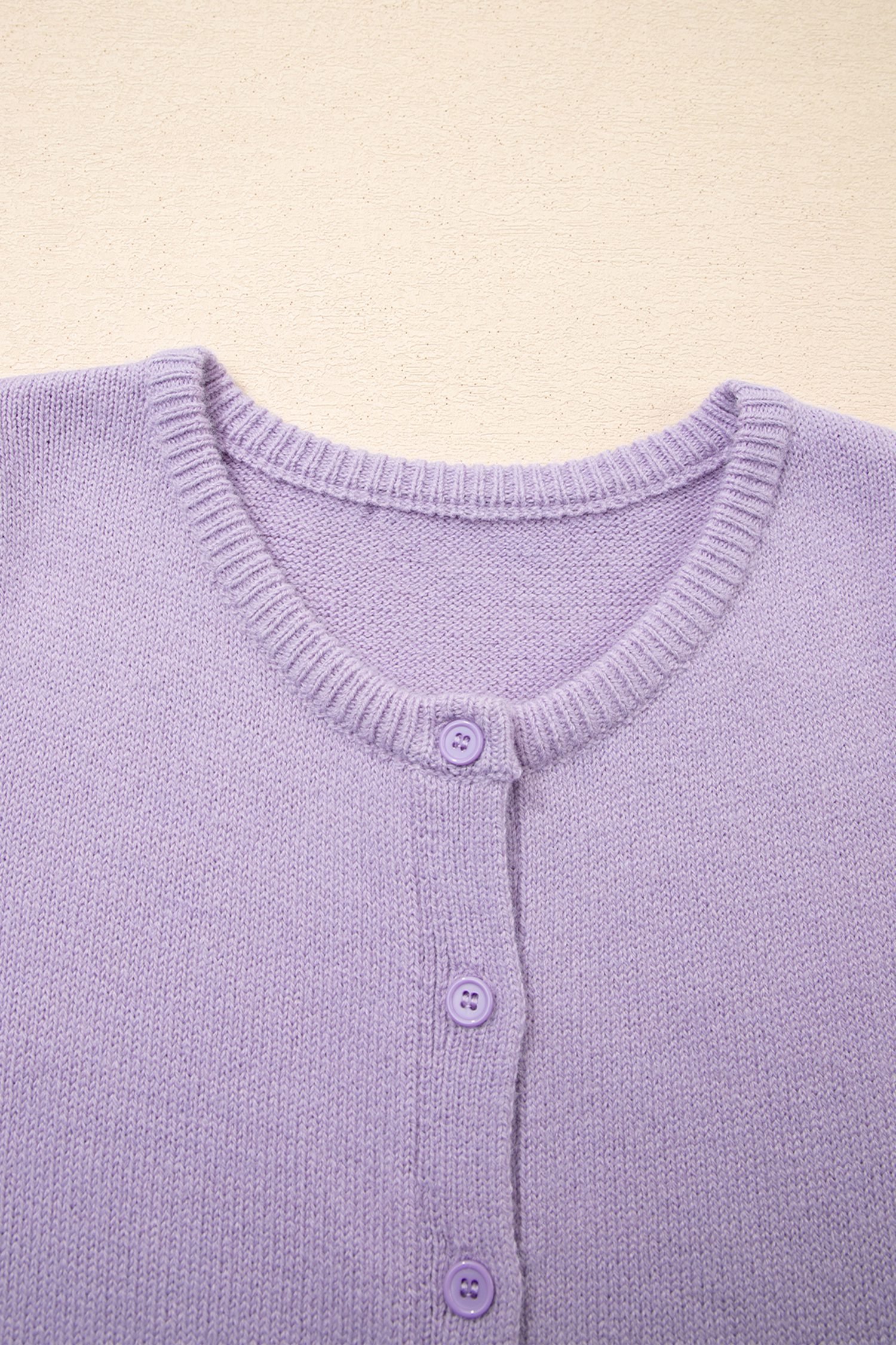 Short sleeve cardigan sweater offers a lightweight, casual layering option.