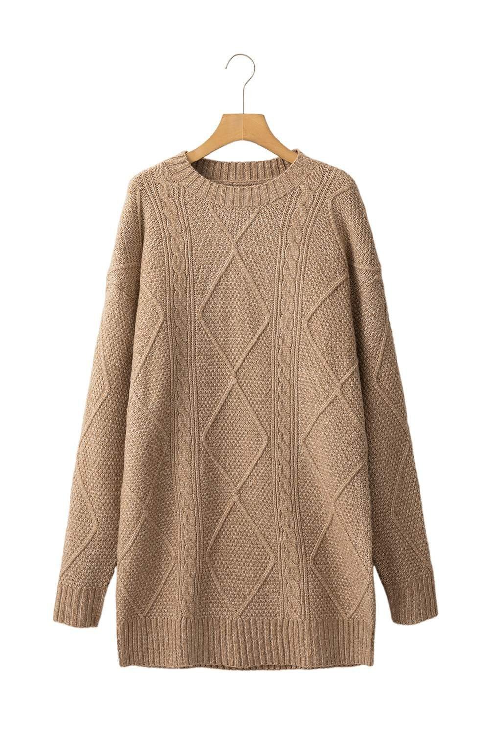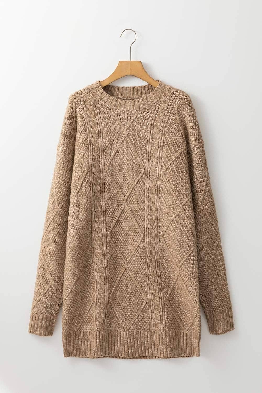 Be the first to review “Parchment Cable Knit Drop Shoulder Loose Fit Sweater Dress”