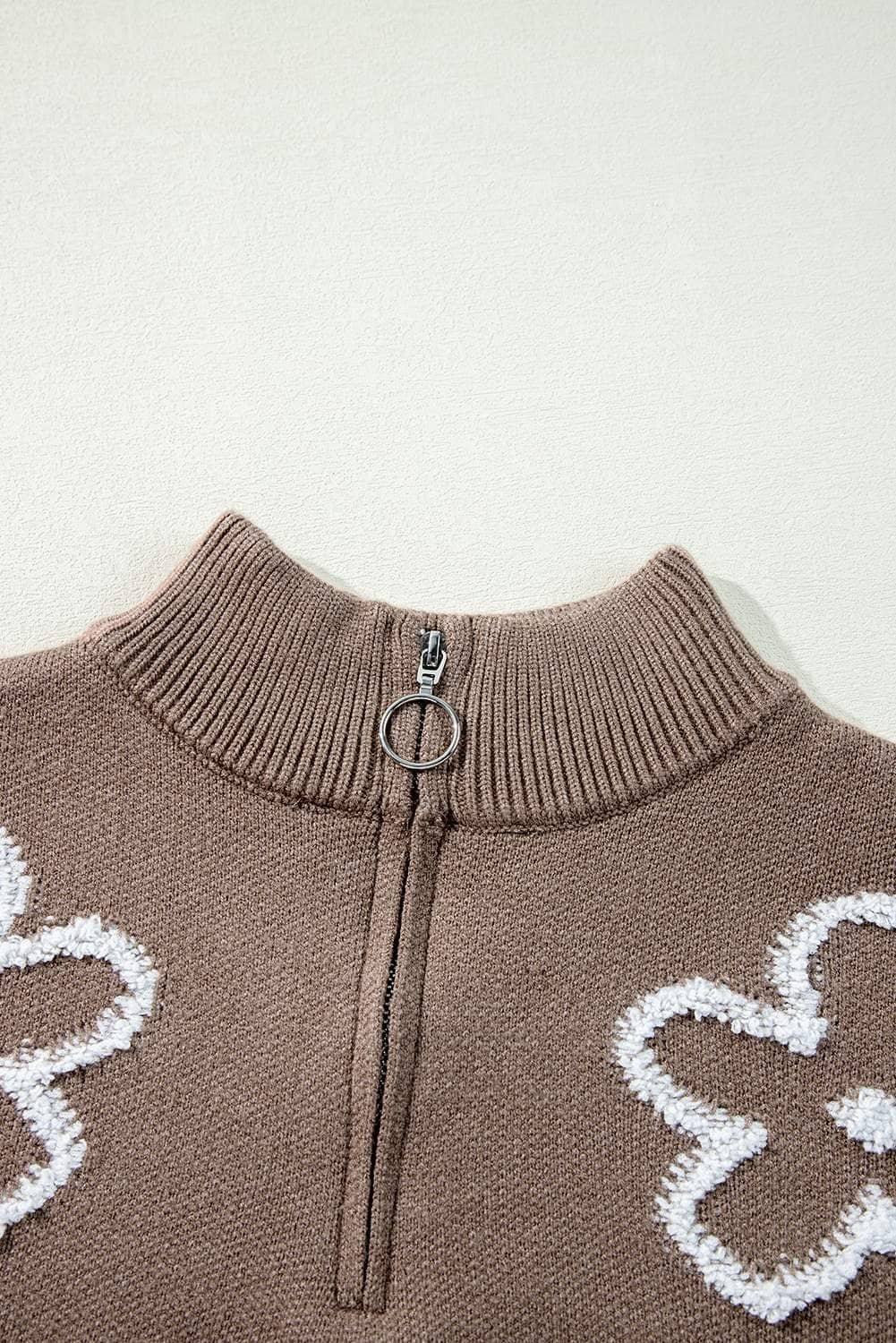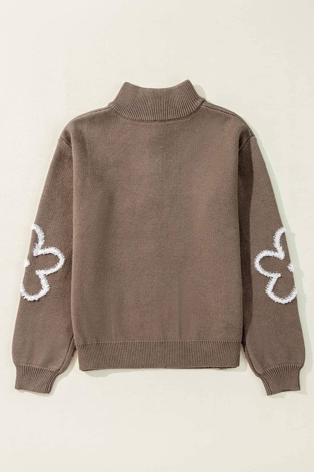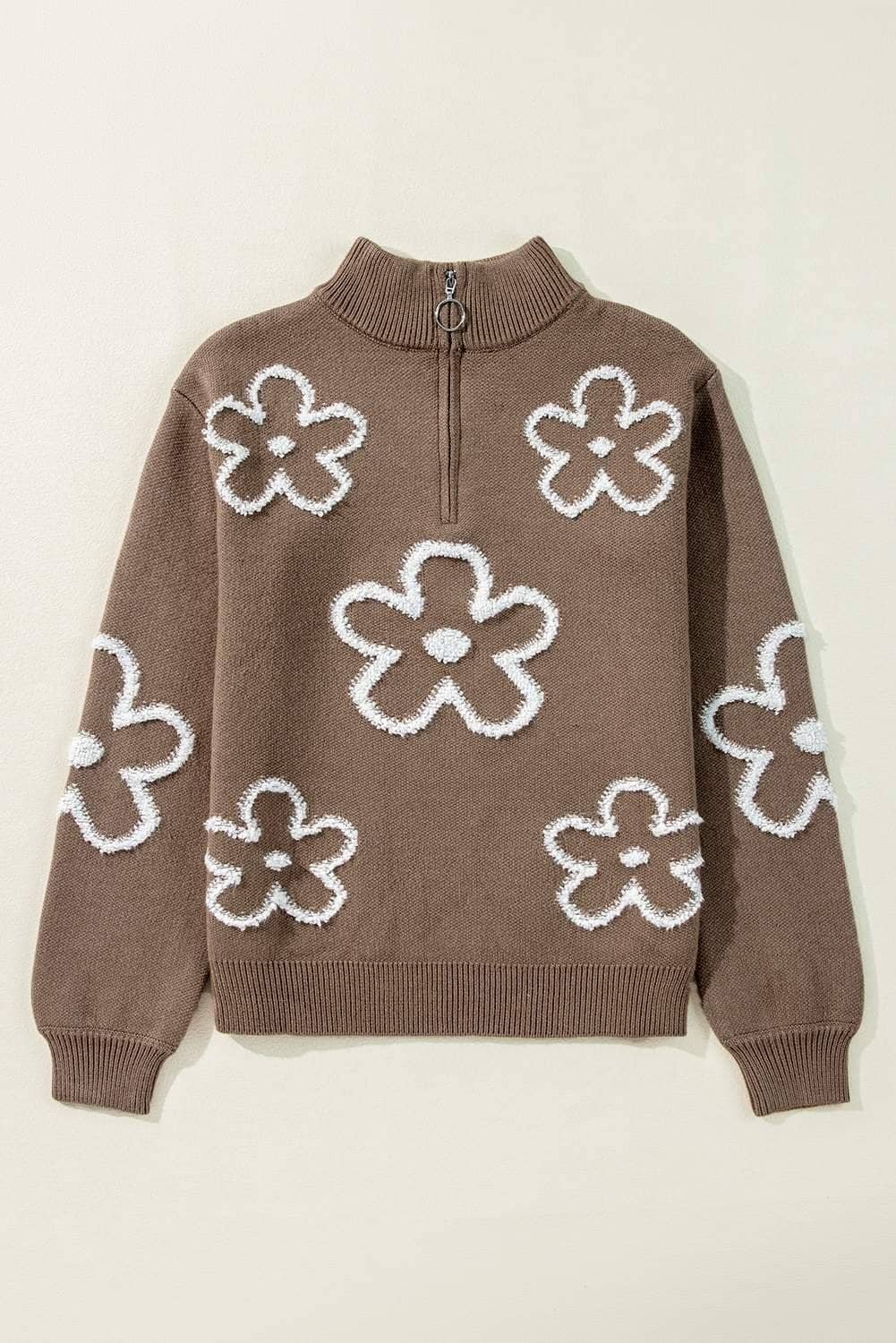 - Contrasting flower pattern adds this knitted top a touch of elegance.