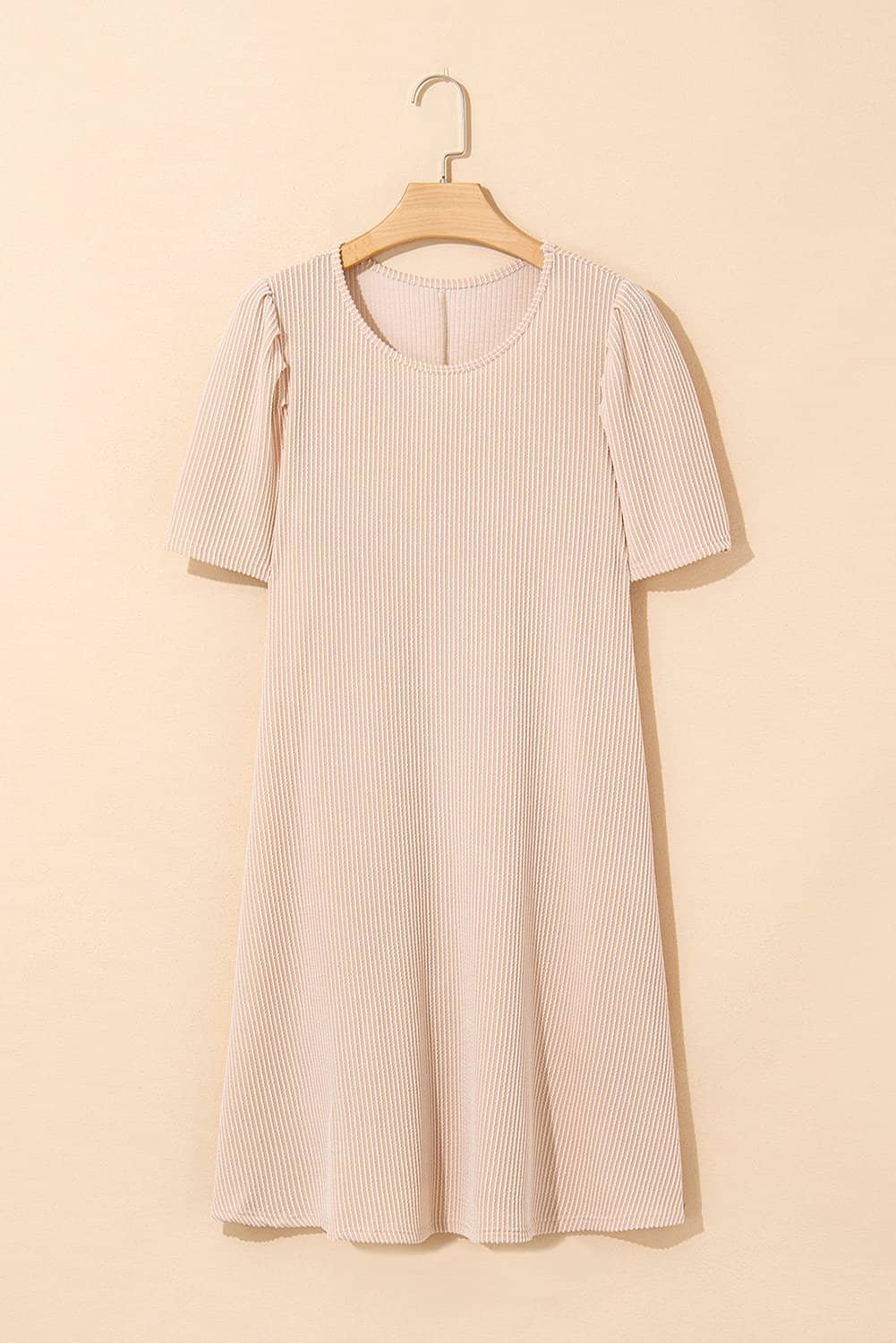Be the first to review “Parchment Corded Knit Crew Neck Puff Sleeve Shift Mini Dress”