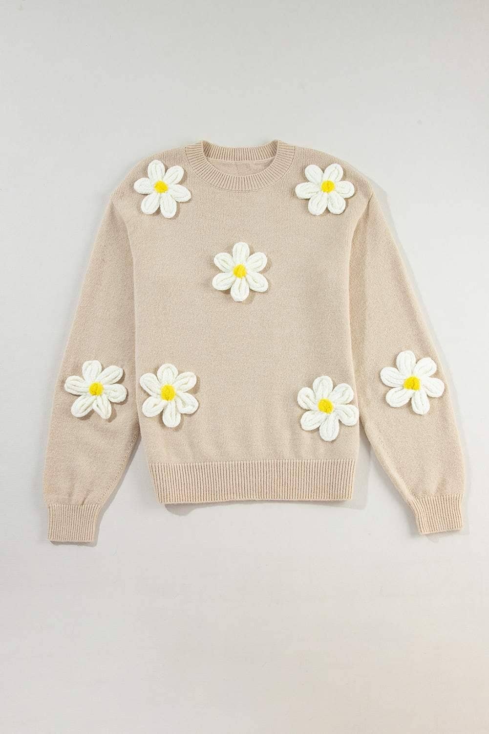 • This knit sweater with delicate floral embroidery bringing a touch of everyday elegance