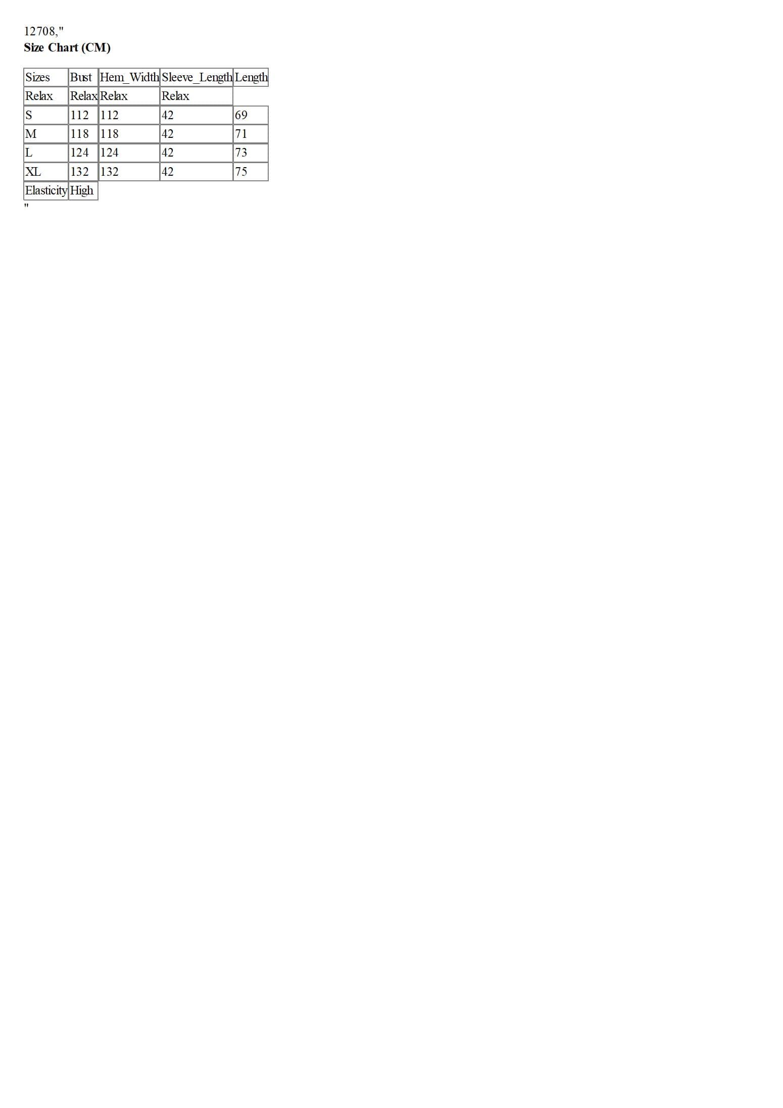 Size Chart (CM)