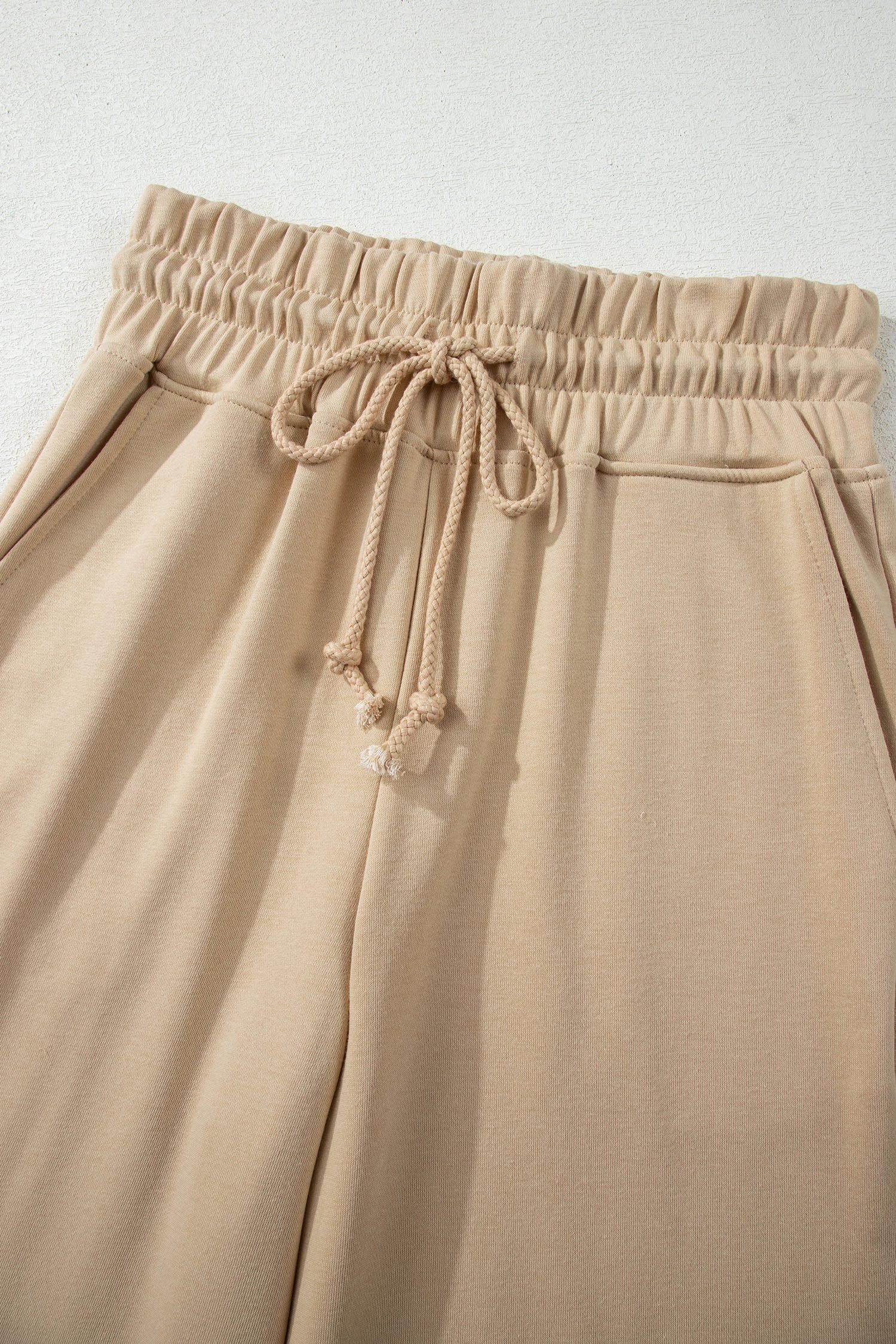 Drawstring wide leg pants ensure adjustable fit and effortless movement.