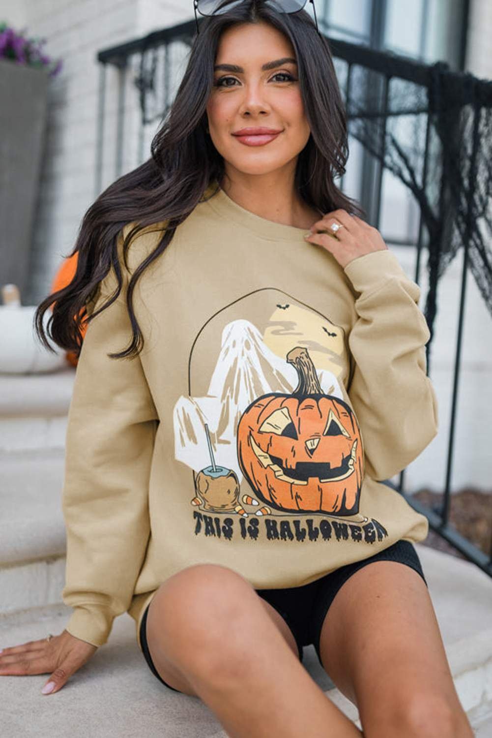 Parchment Spooky Pumpkin Graphic Crewneck Halloween Sweatshirt