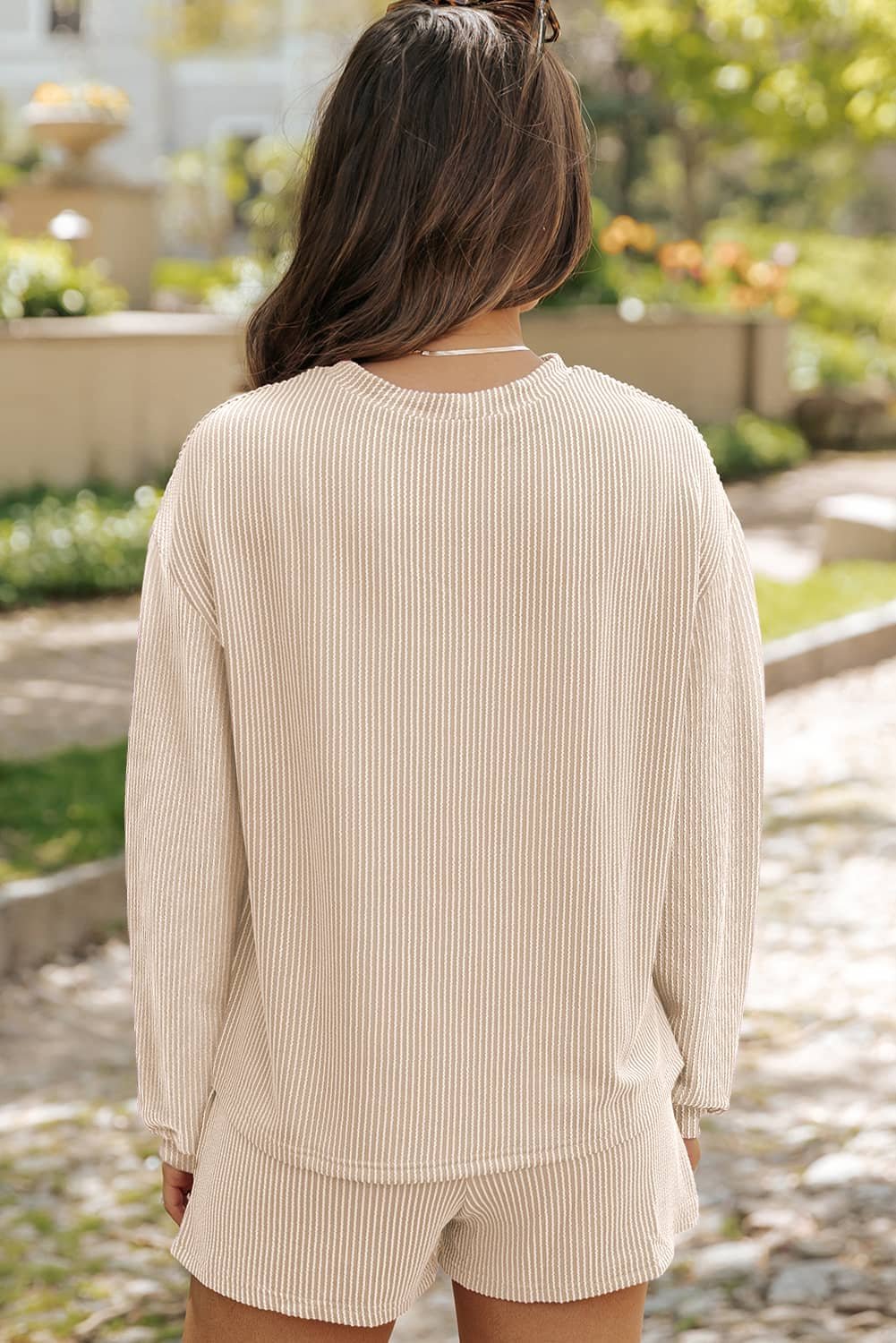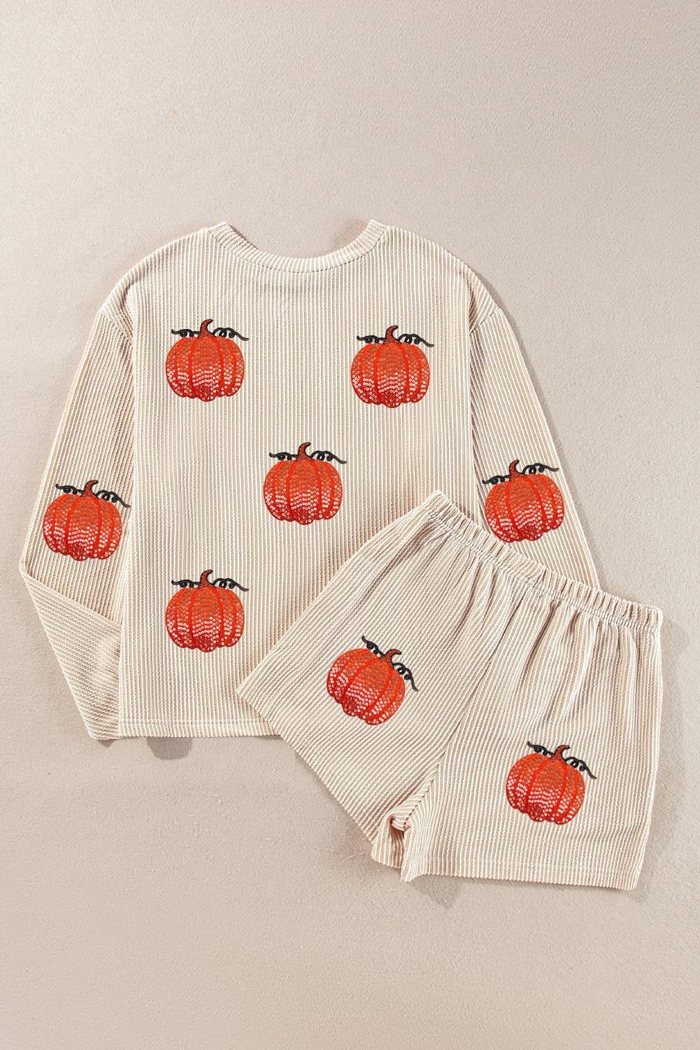 2pcs outfit includes a long sleeve top and matching shorts.