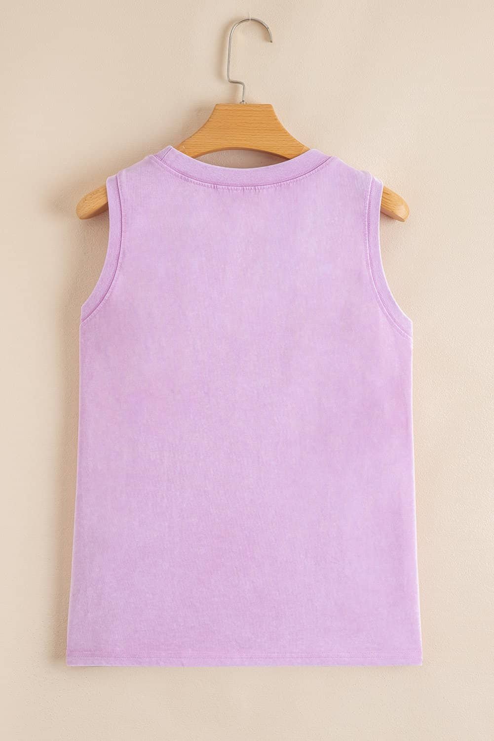 Phalaenopsis Mineral Wash Patched Chest Pocket Casual Tank Top