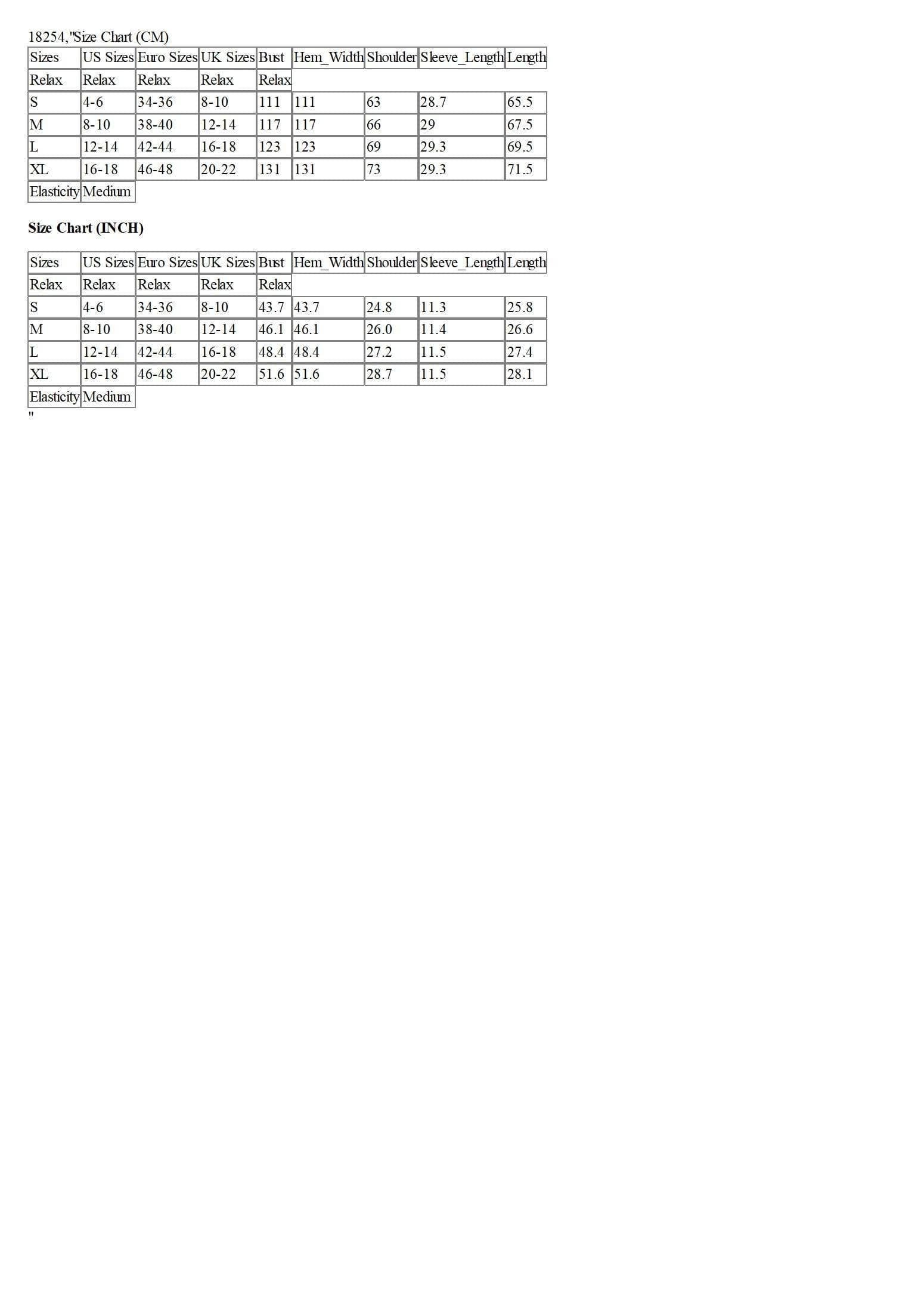 Size Chart (CM)