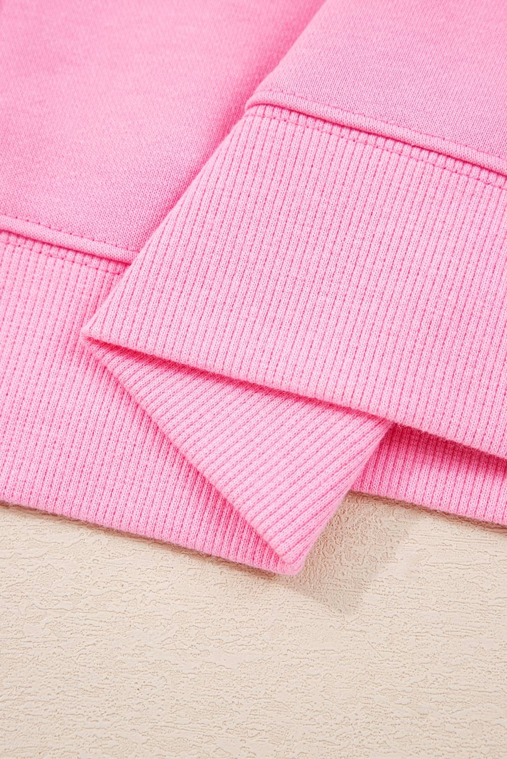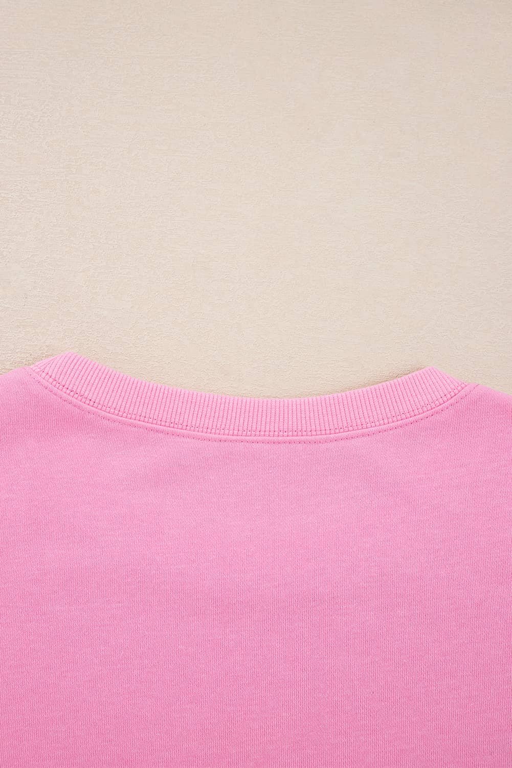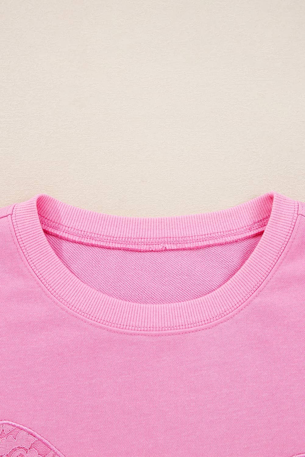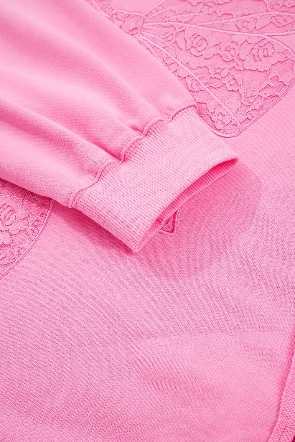 Pink Big Bow Lace Embroidered Dolman Sleeve Slit Plus Size Sweatshirt