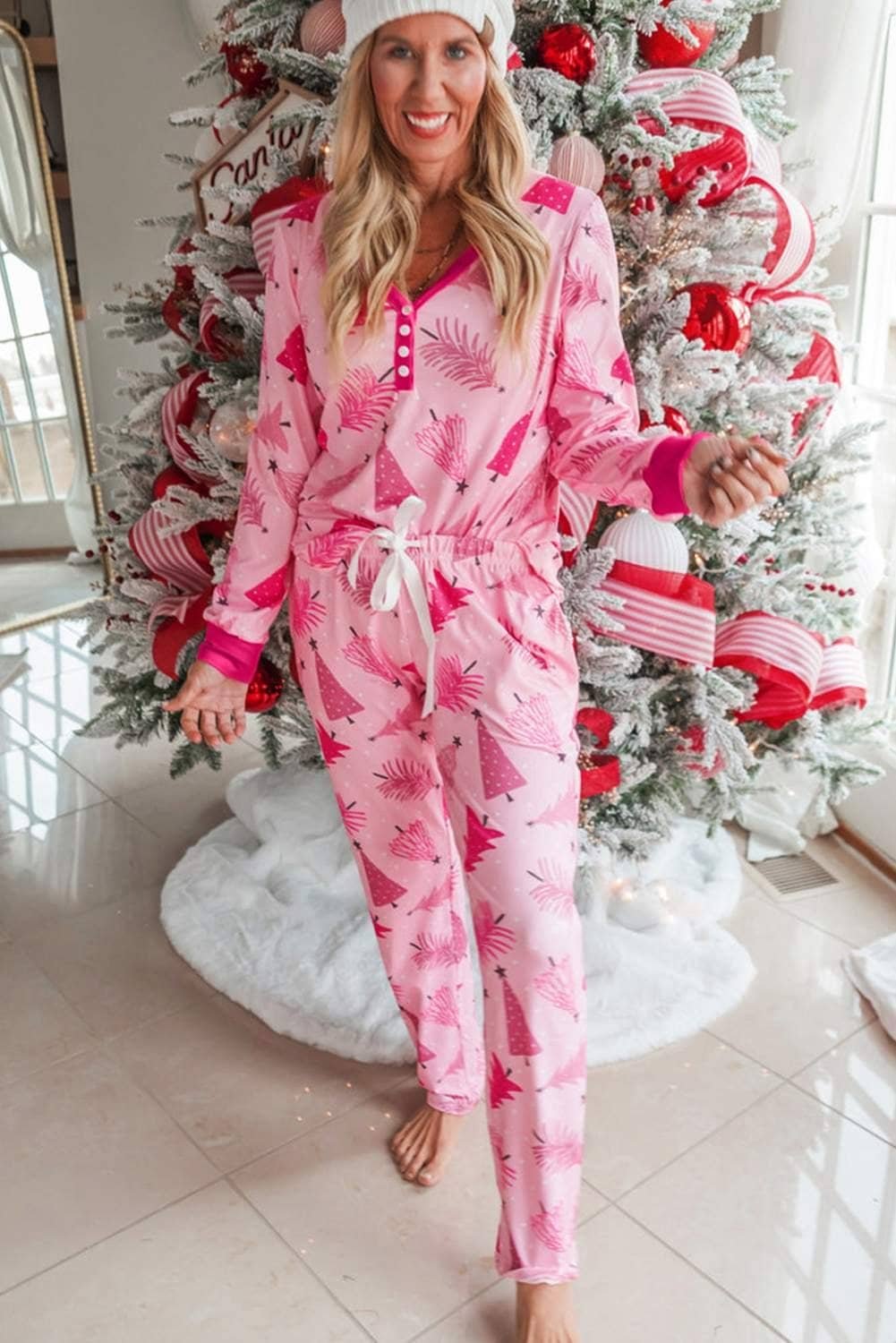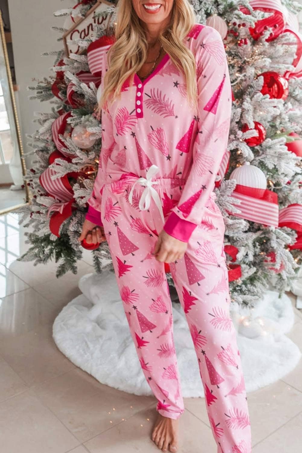 - Stay cozy in style withthis Christmas Tree Print Lounge Set.