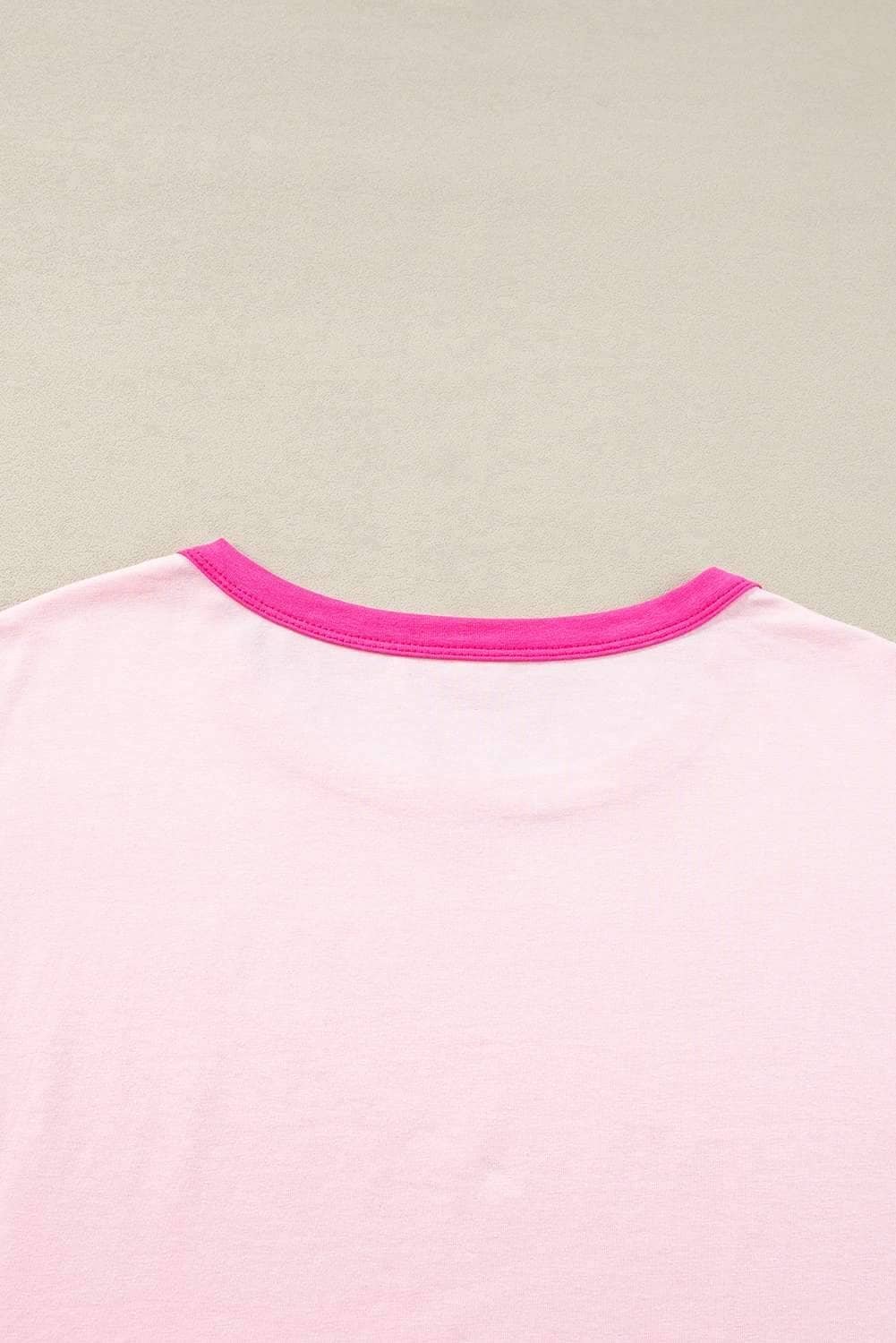 Be the first to review “Pink Colorblock Patchwork Long Sleeve Loose Top”