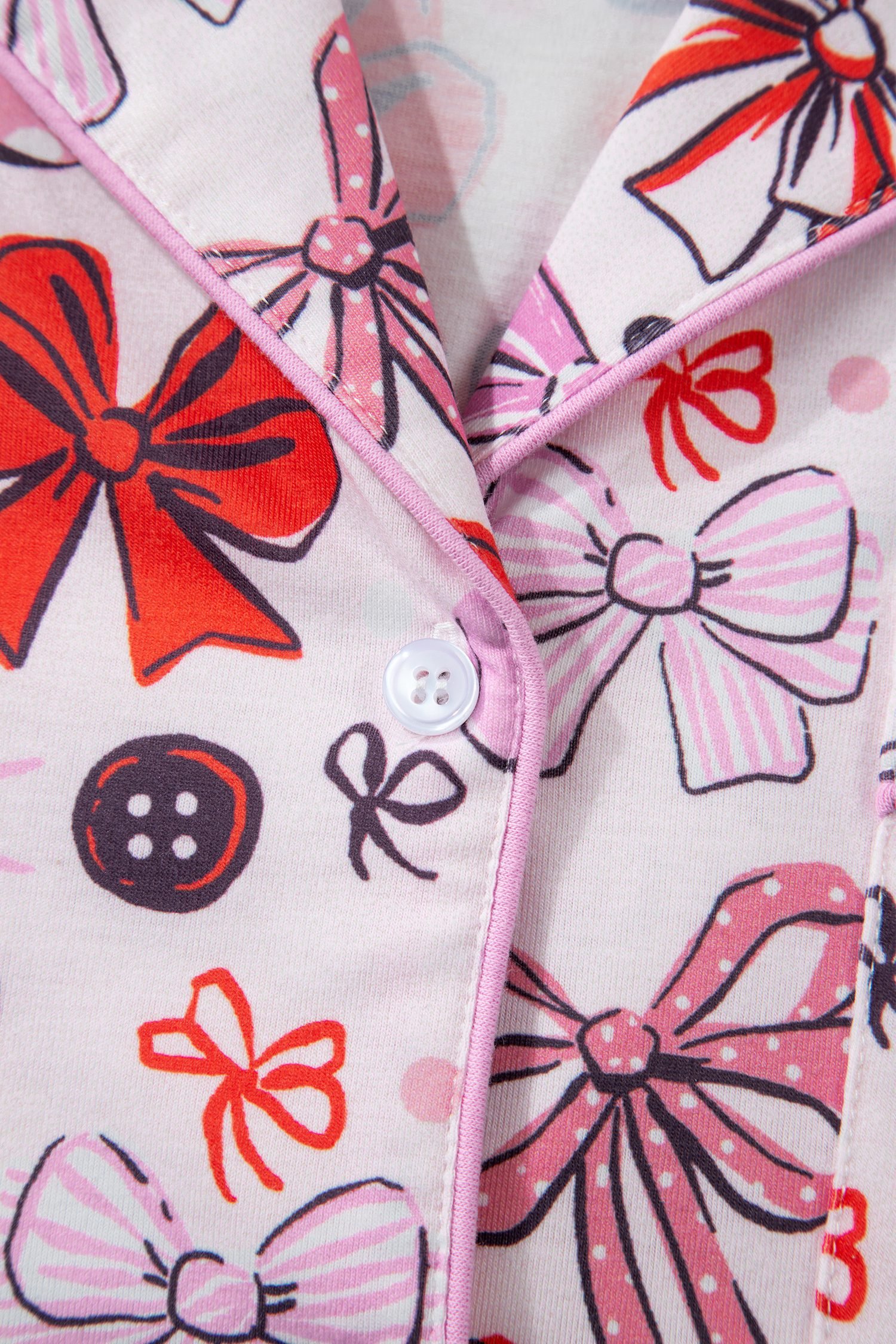 - Ribbon bow pajama set features a cute, playful sleepwear look.