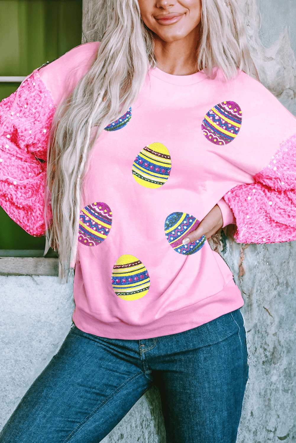 - Features sequin Easter egg patches for a festive and cheerful look.