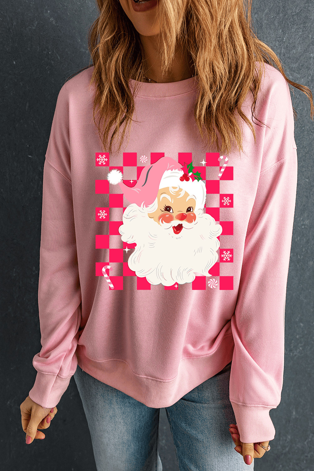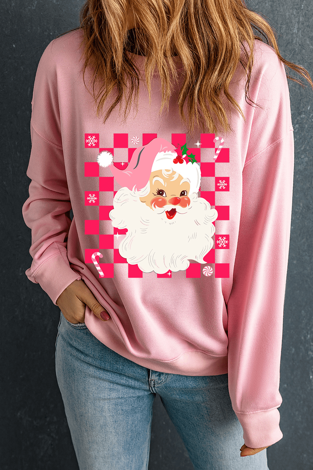 Be the first to review “Pink Fancy Checkered Father Christmas Graphic Sweatshirt”