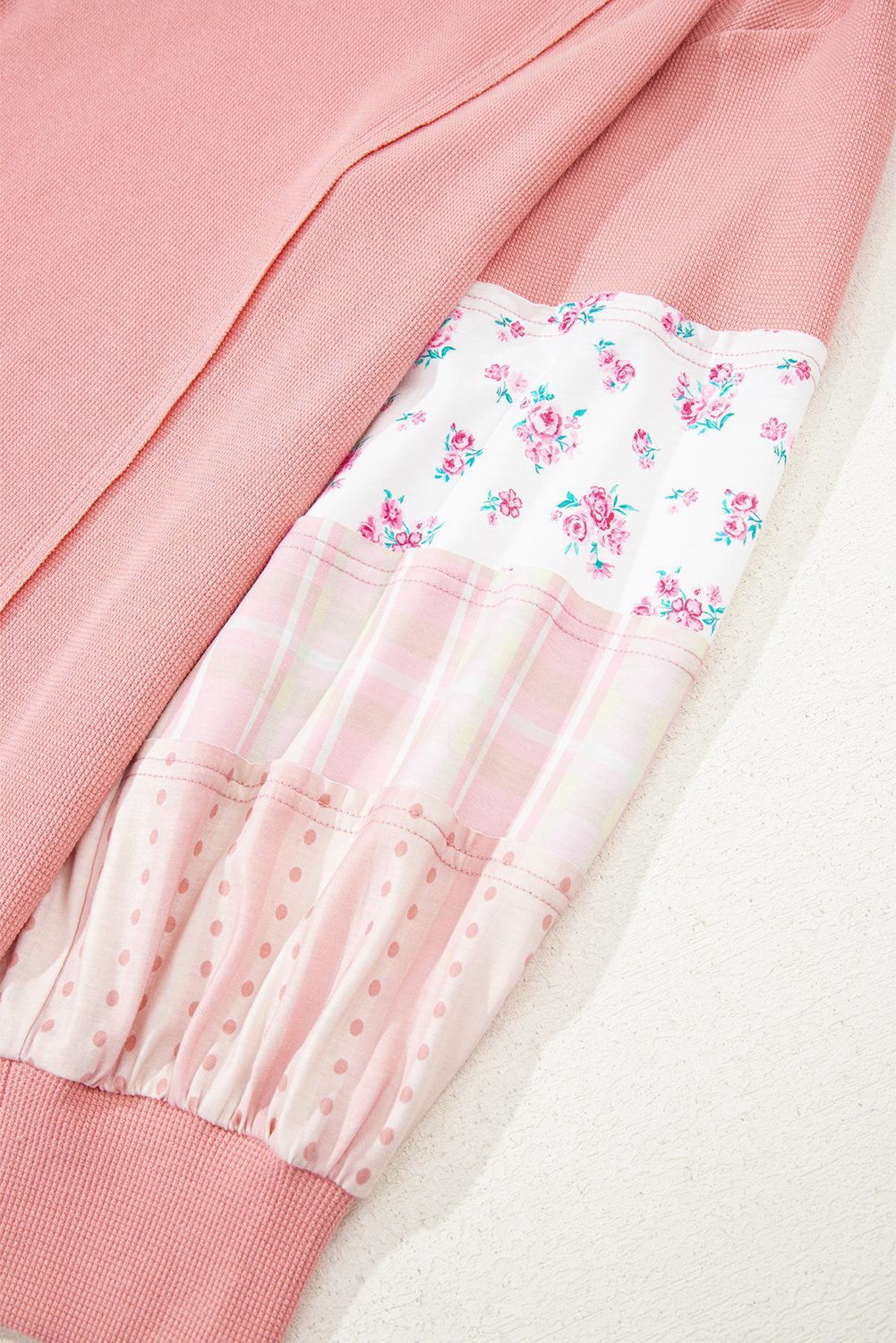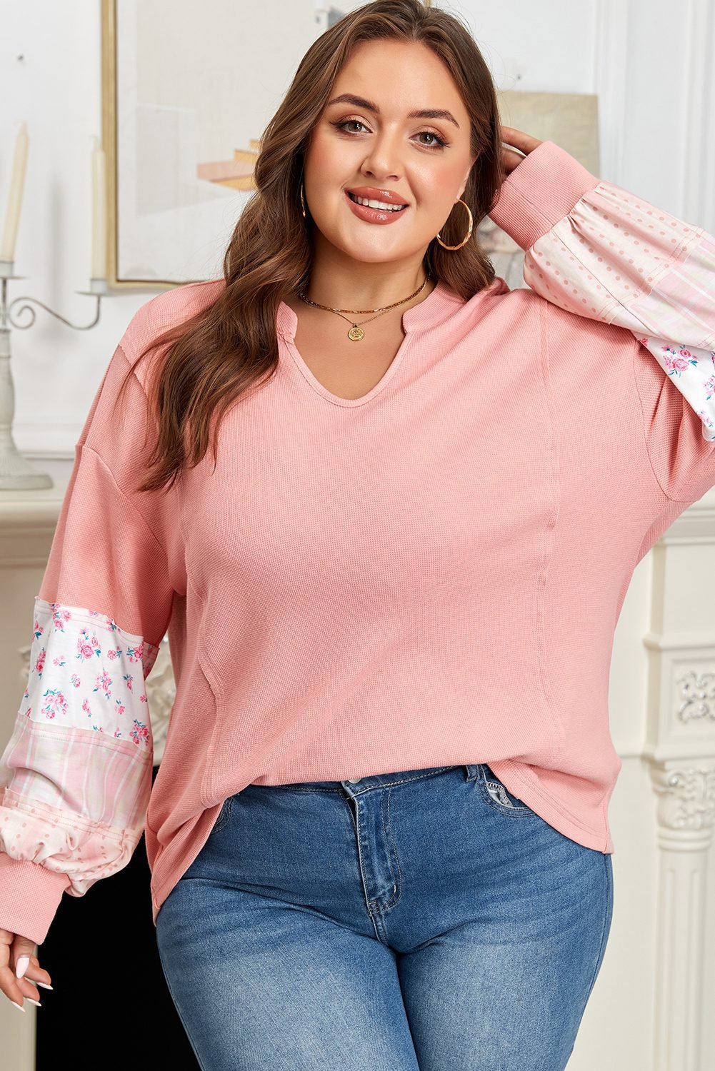 - The floral sleeve patchwork makes this plus top gets away from dull.