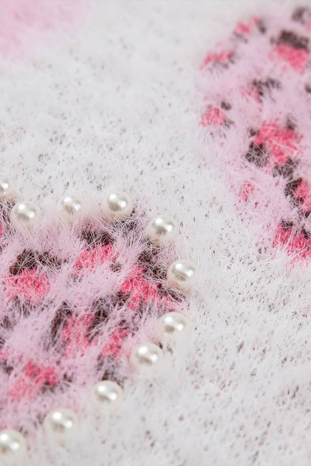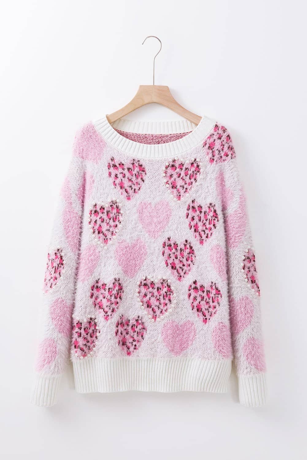 - The sweater features romantic heart-shaped and leopard heart print, blending boldness with a touch of sweetness.