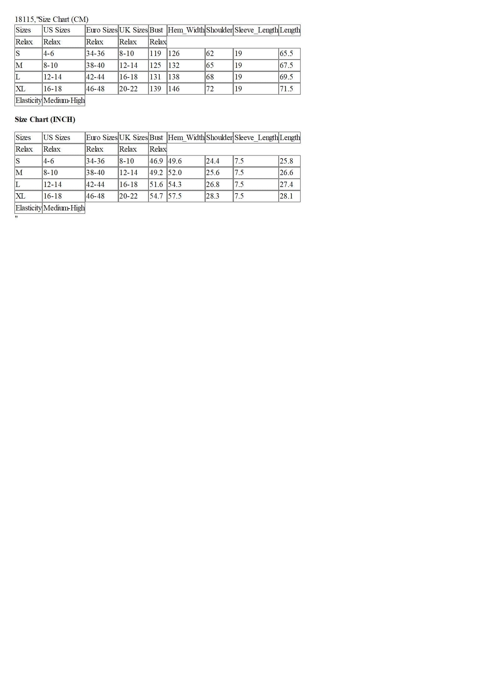 Size Chart (CM)