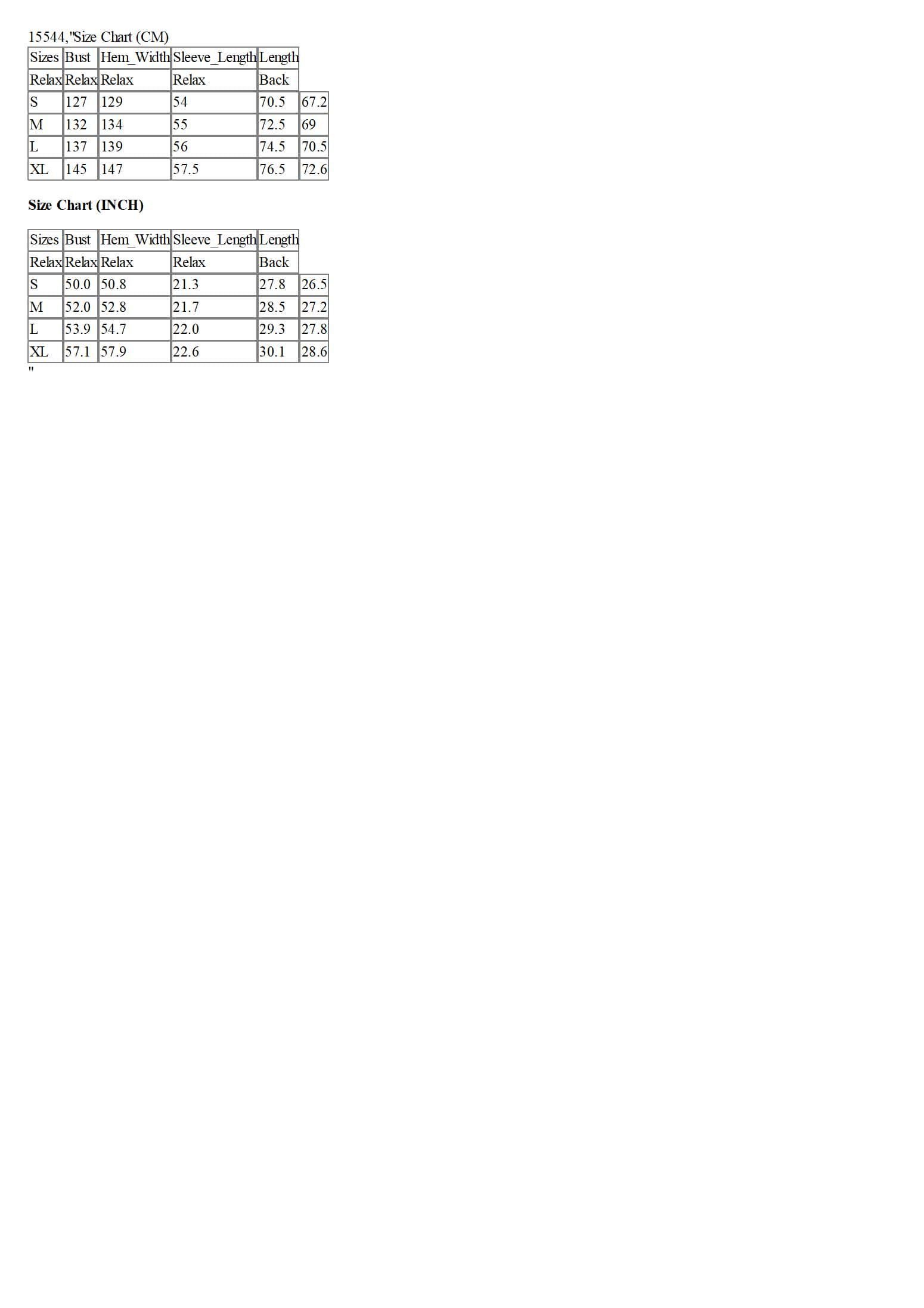 Size Chart (CM)