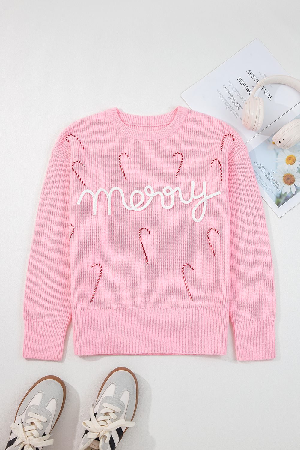 Merry script makes this knit sweater perfect for Christmas.