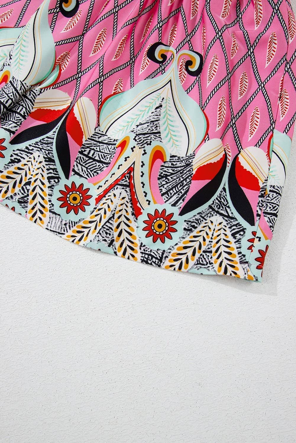 Be the first to review “Pink Paisley Geometric Print V Neck High Waist Romper”