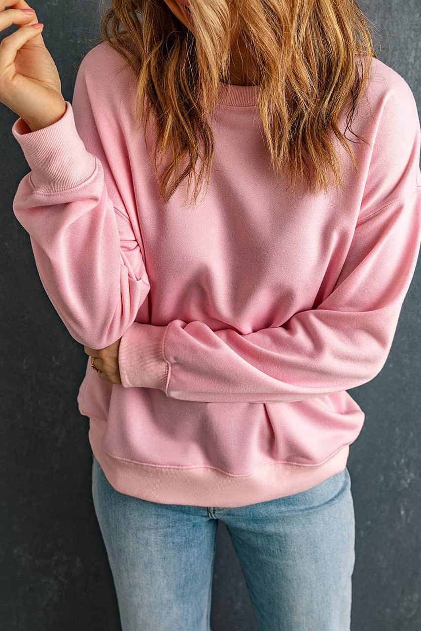 Pink Solid Classic Crewneck Pullover Sweatshirt