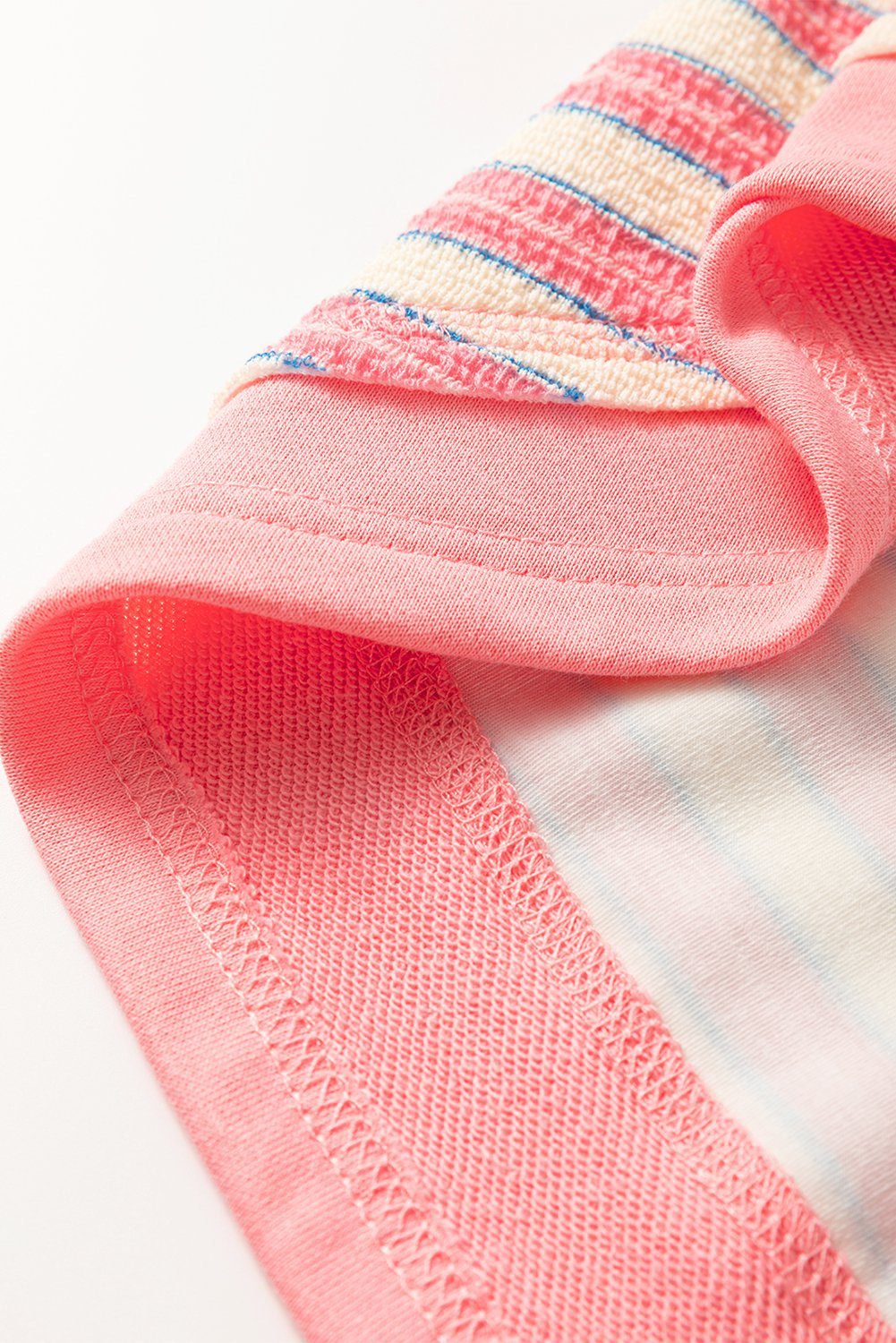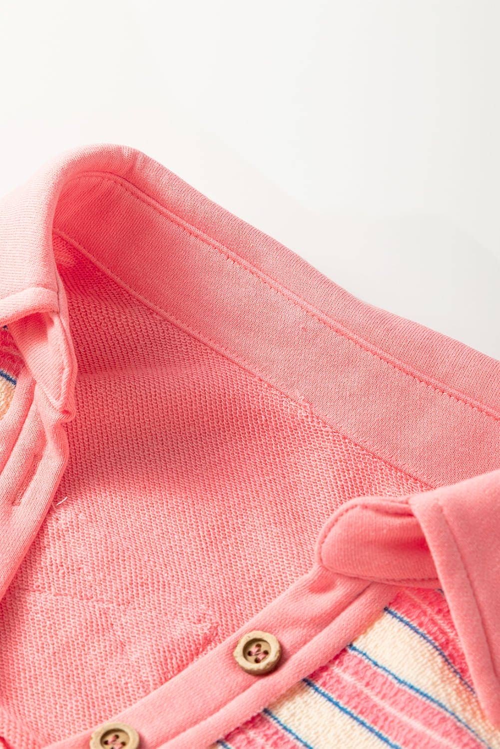 Pink Stripe Buttoned V Neck Collared Drop Shoulder Top