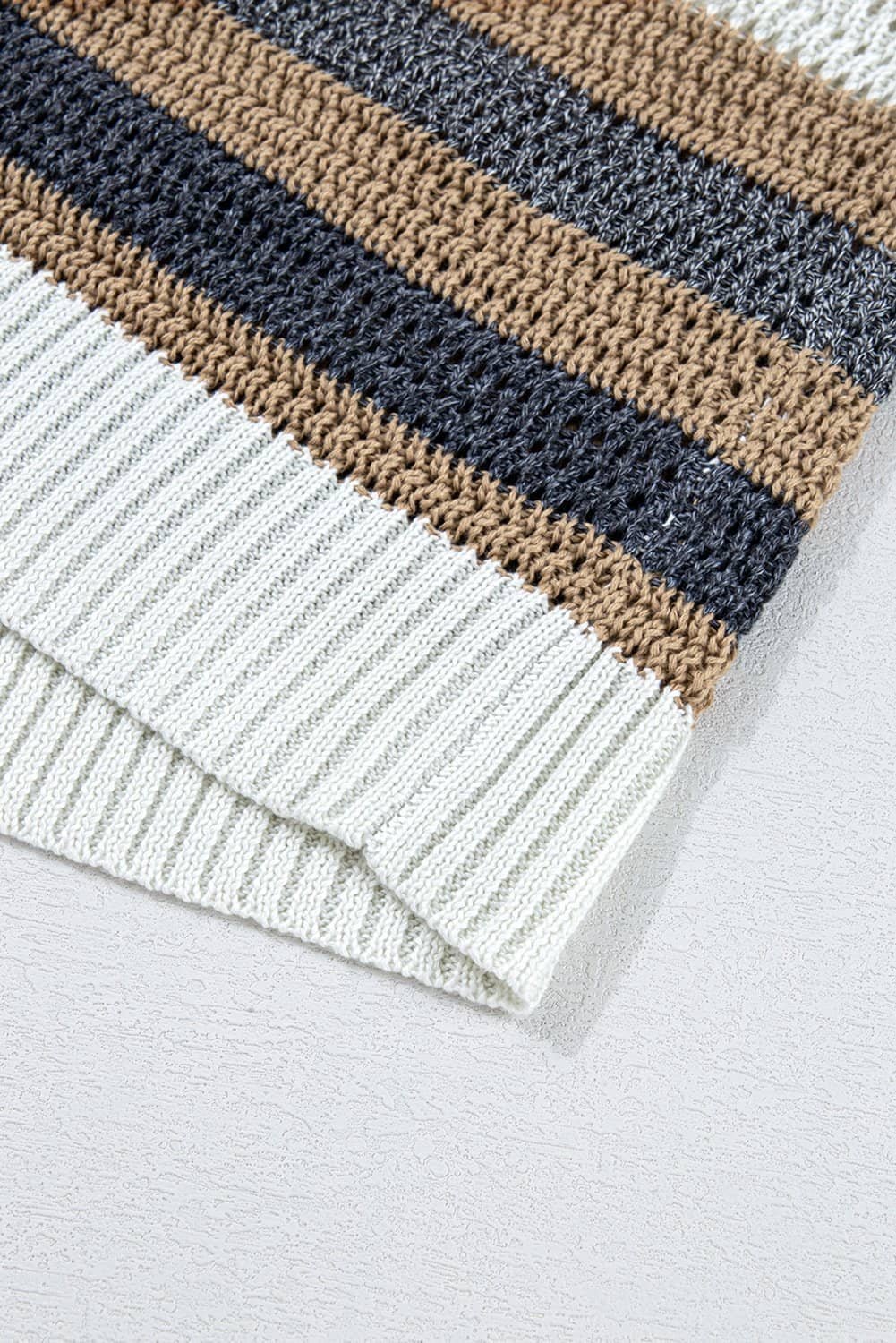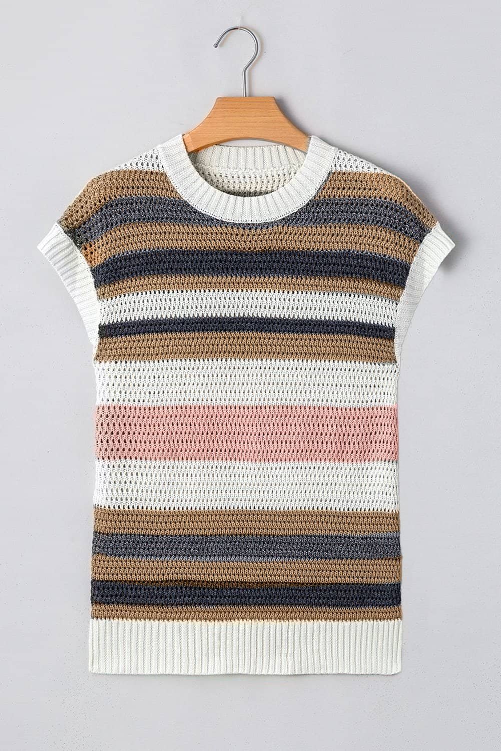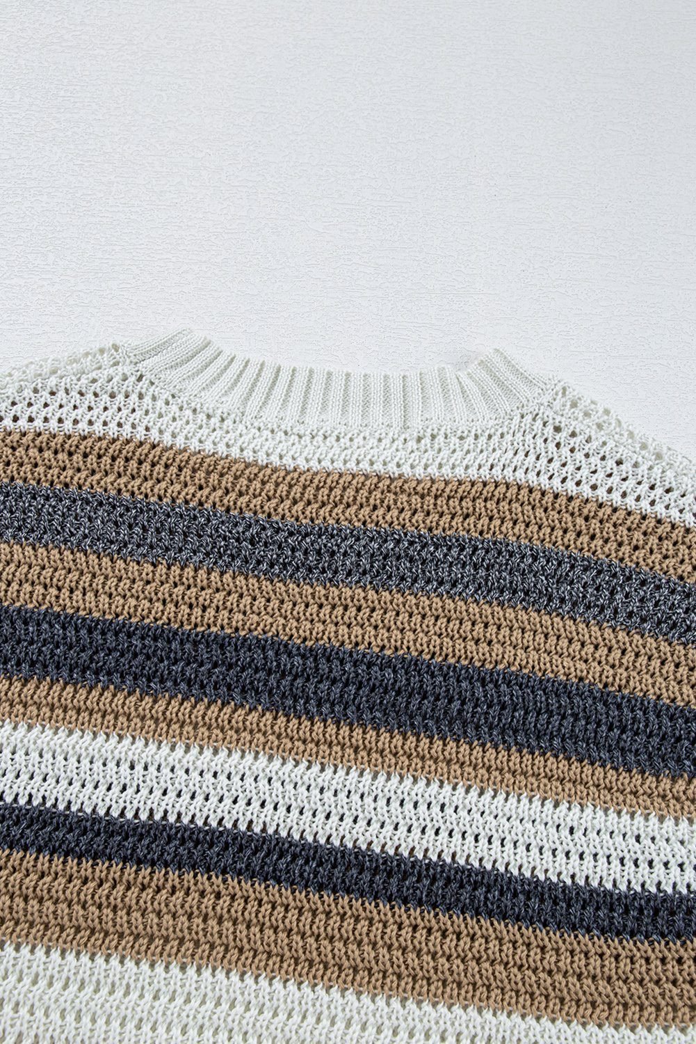 - The sweater tee features a combination of stripes and color blocks.