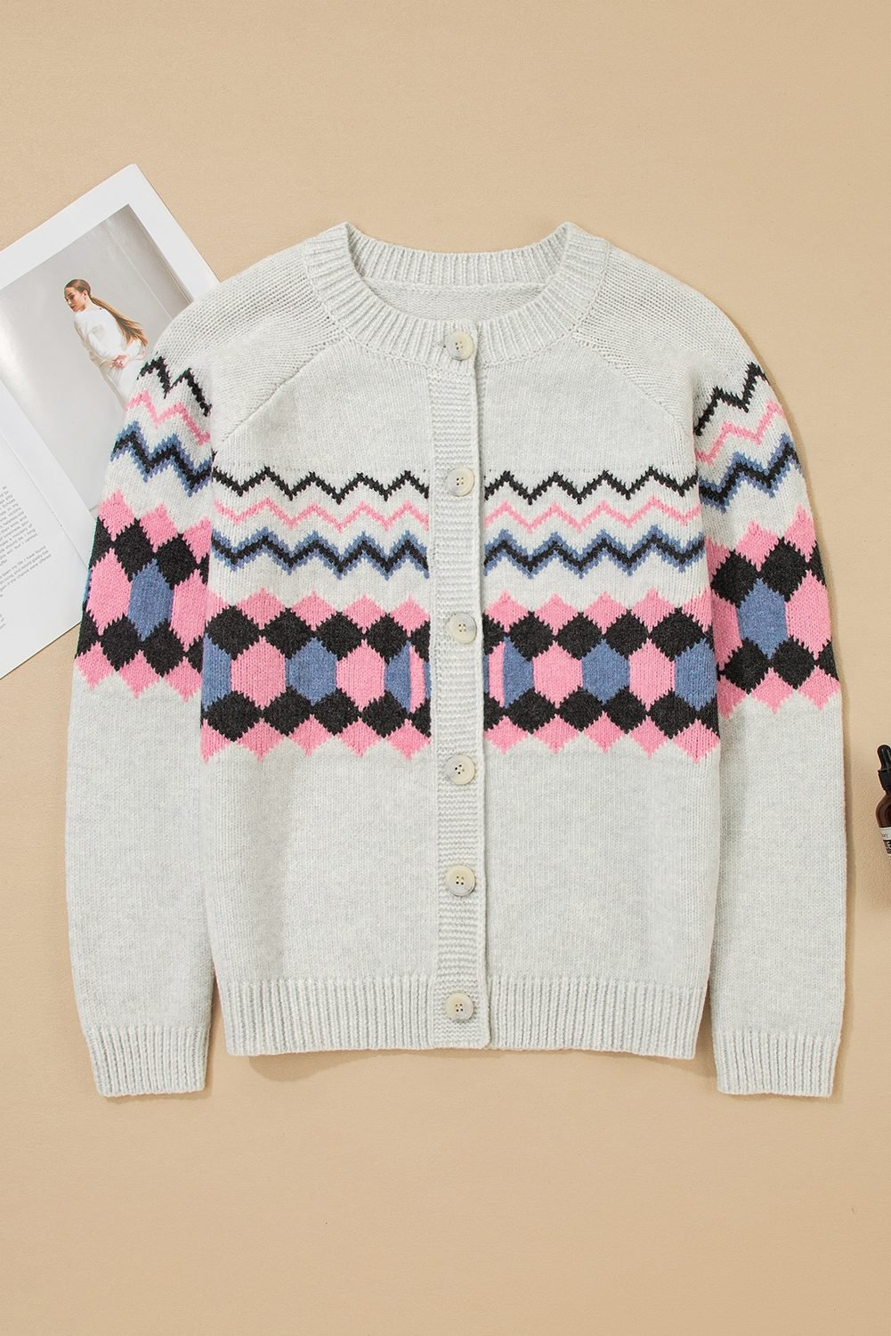 Pink Stripe Geometric Button Up Sweater Cardigan