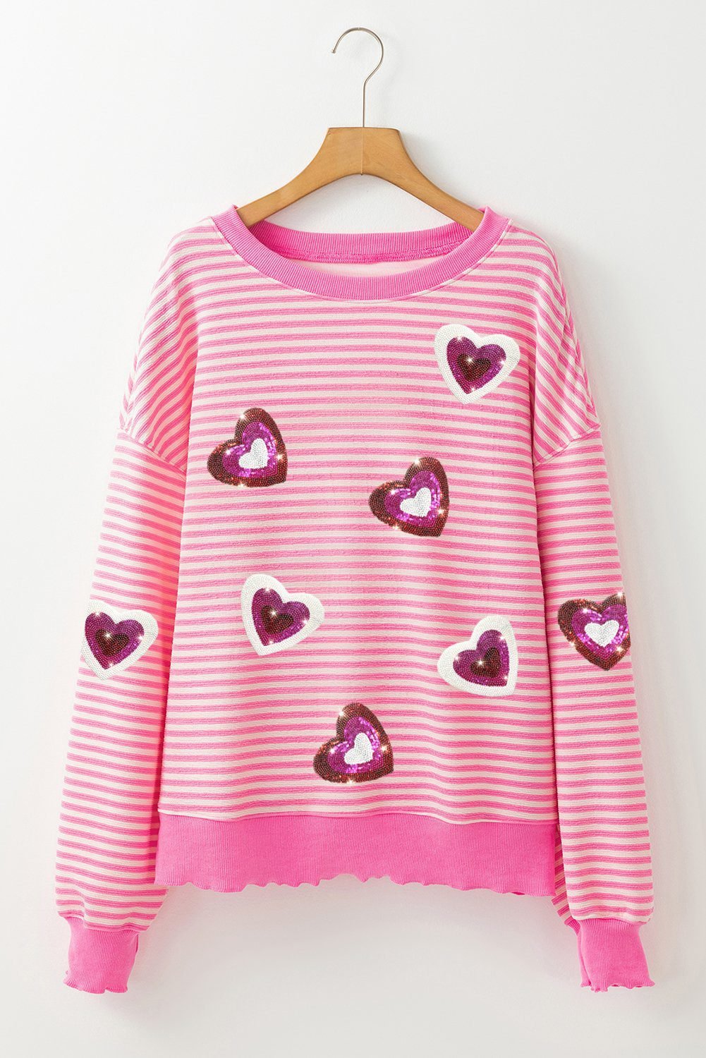 - Shine bright with the sequin hearts adorning this printed top.