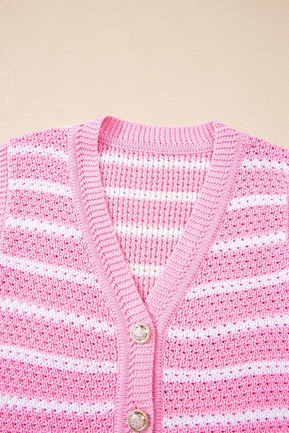 Pink Stripe V Neck Gold Buttons Elegant Sweater Vest