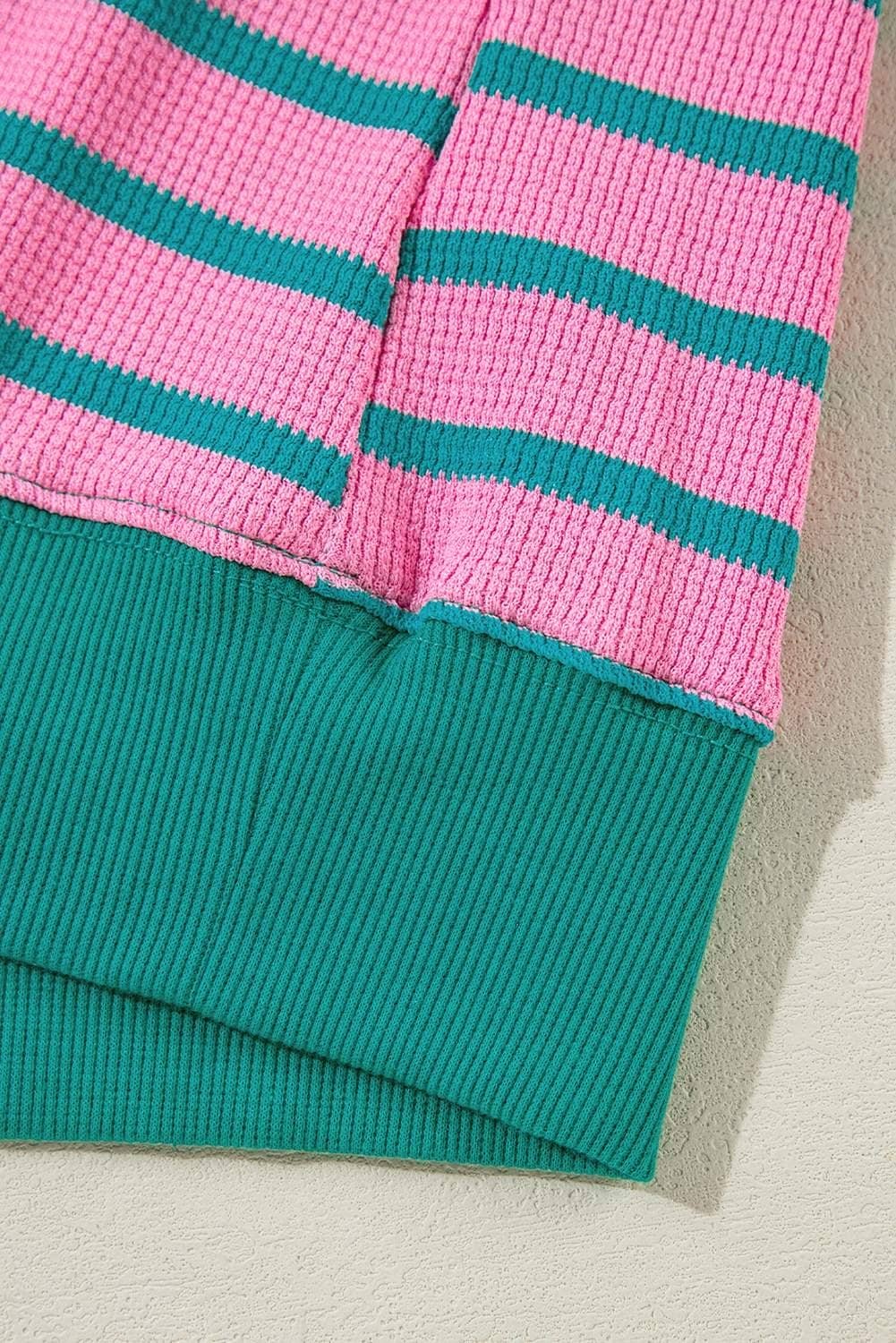Be the first to review “Pink Stripe Waffle Knit Crew Neck Plus Size Sweatshirt”
