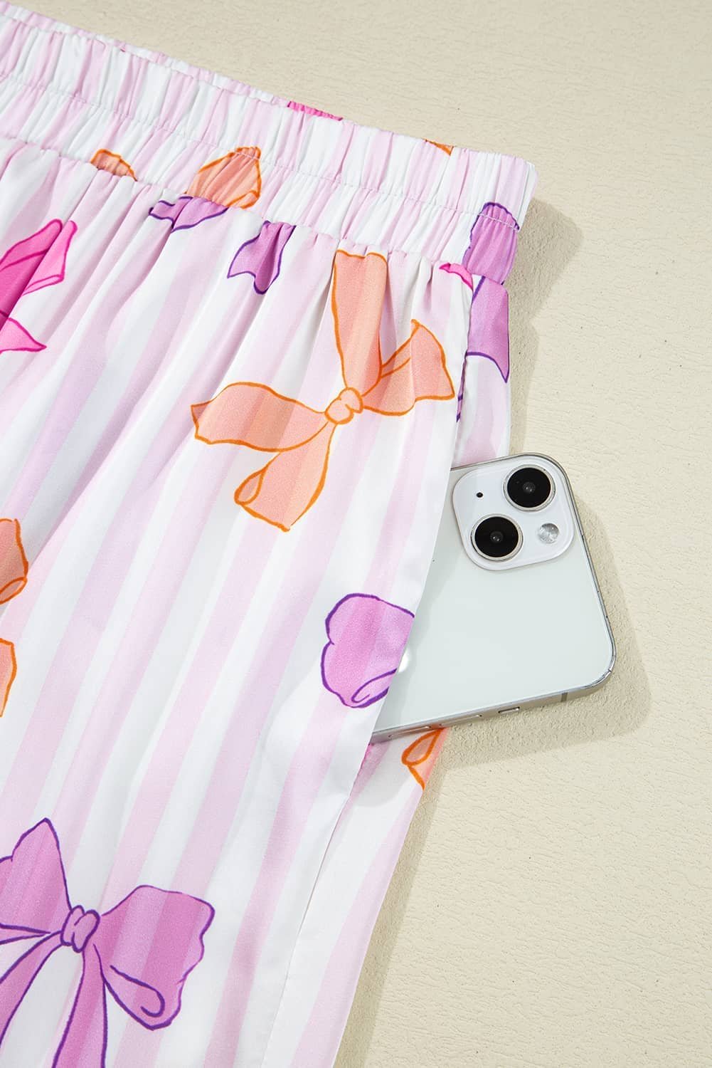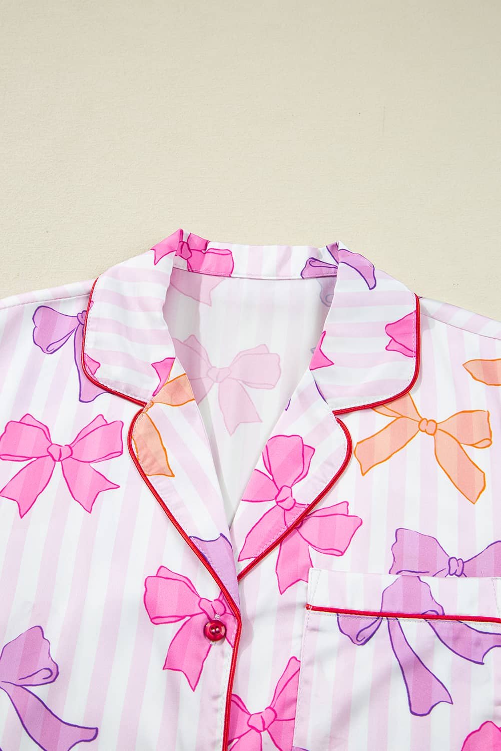 - Striped bow print adds a cute, classic vibe to bedtime style.