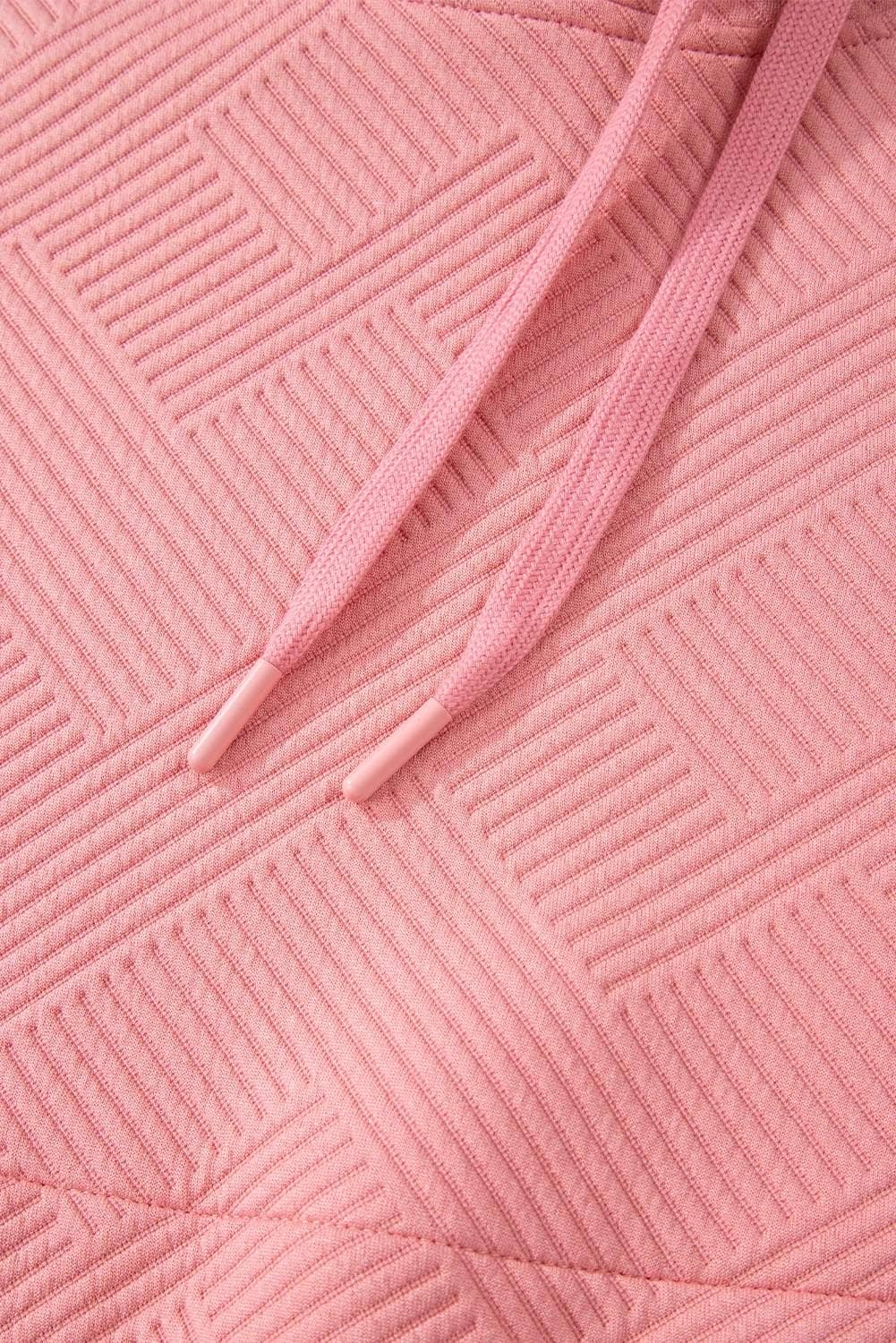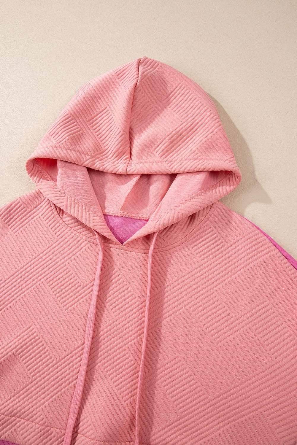 Color-block textured patchwork adds a dynamic visual effect to the hoodie.