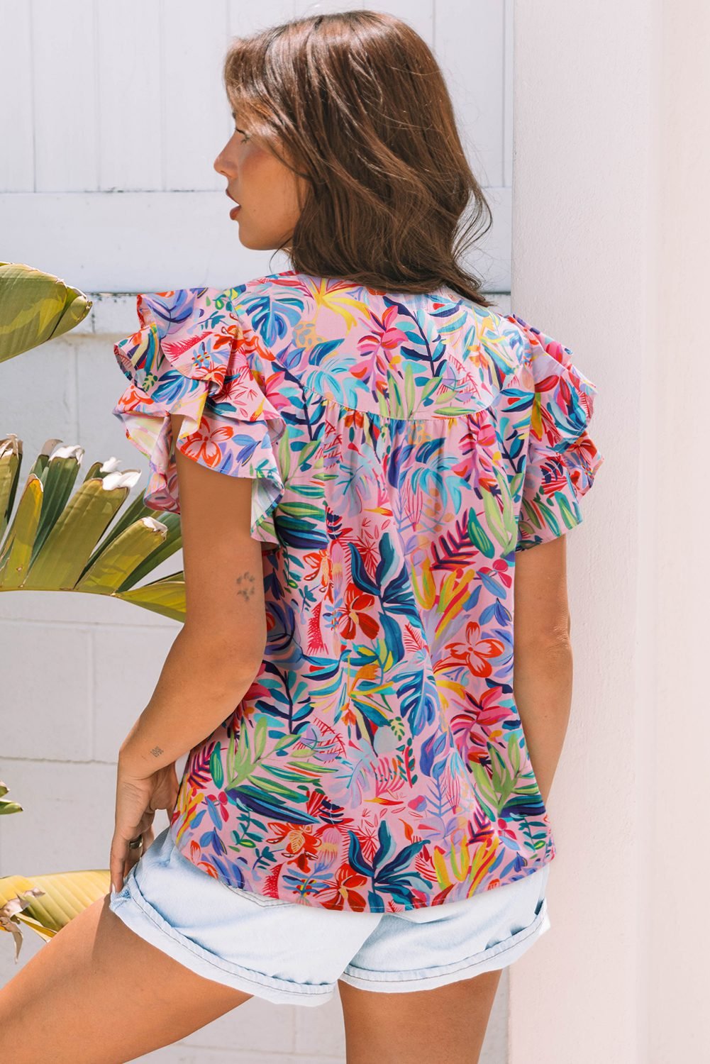 This tropical floral print blouse is fresh and vacation-ready.