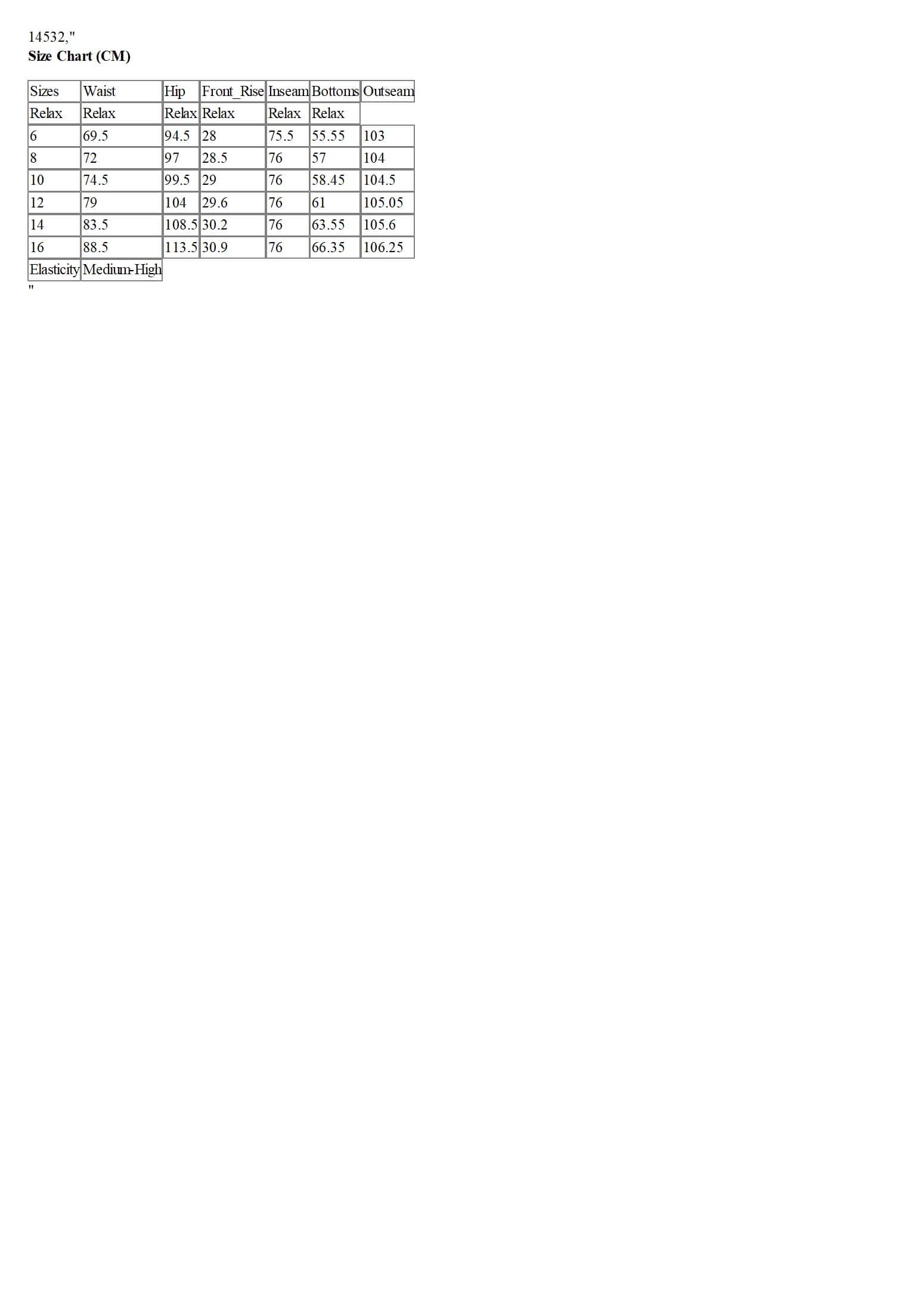 Sizes | Waist | Hip | Front_Rise | Inseam | Bottoms | Outseam |