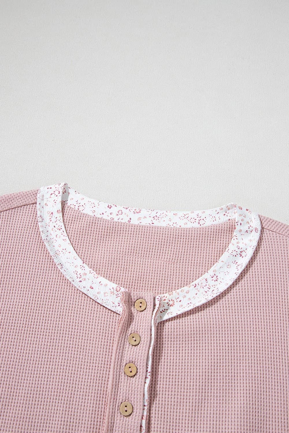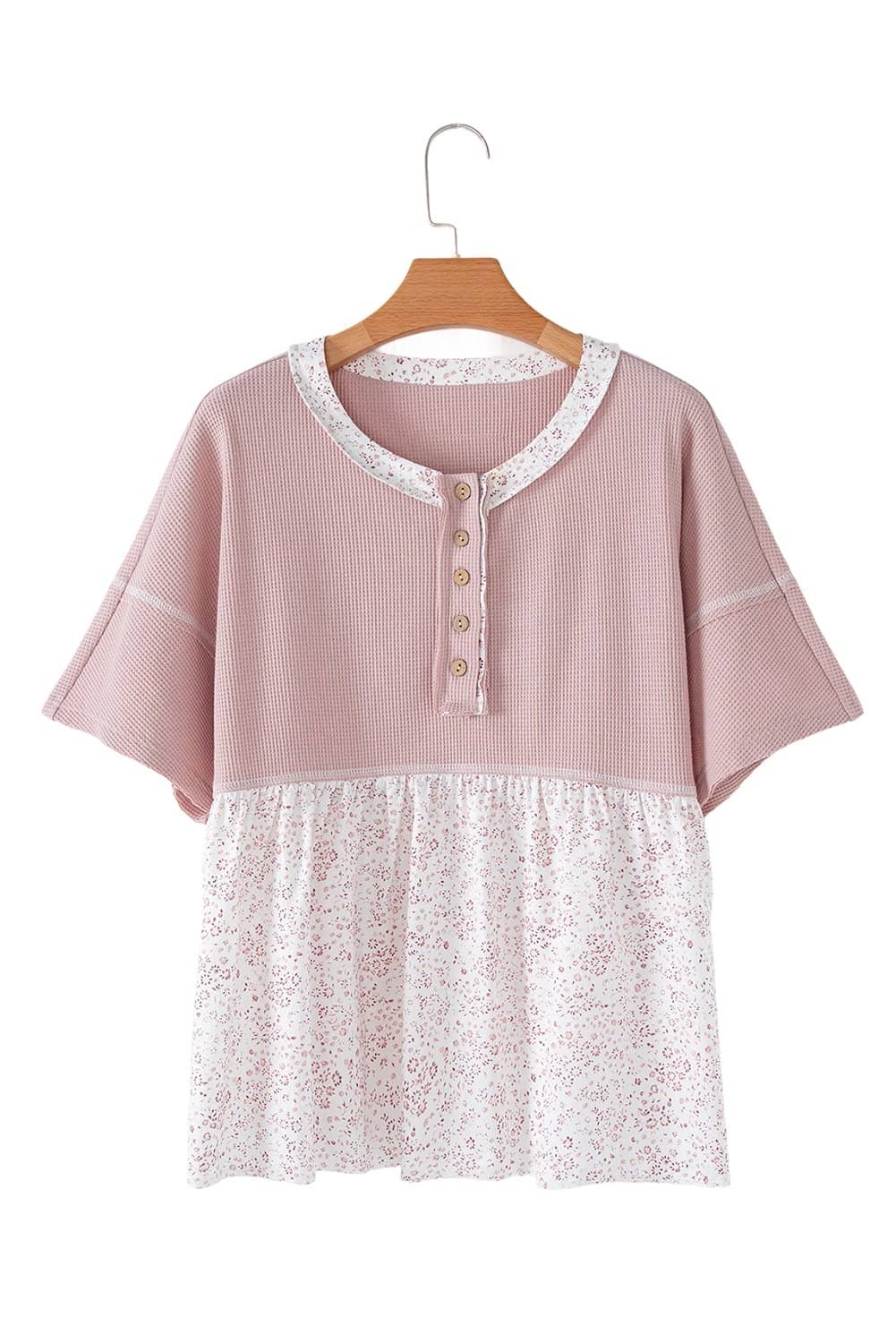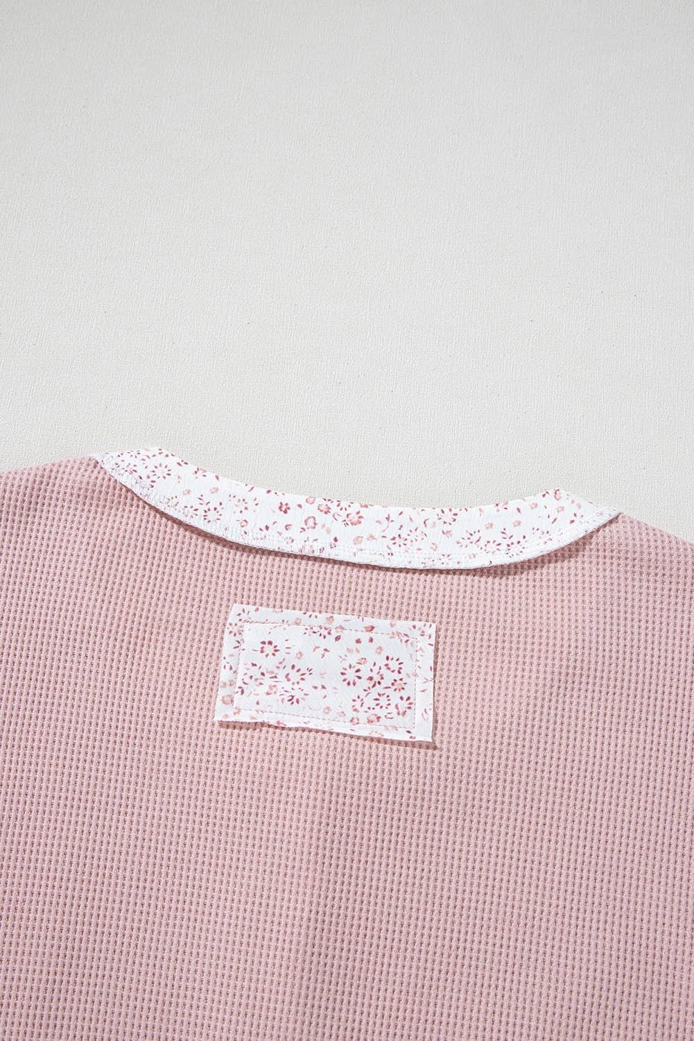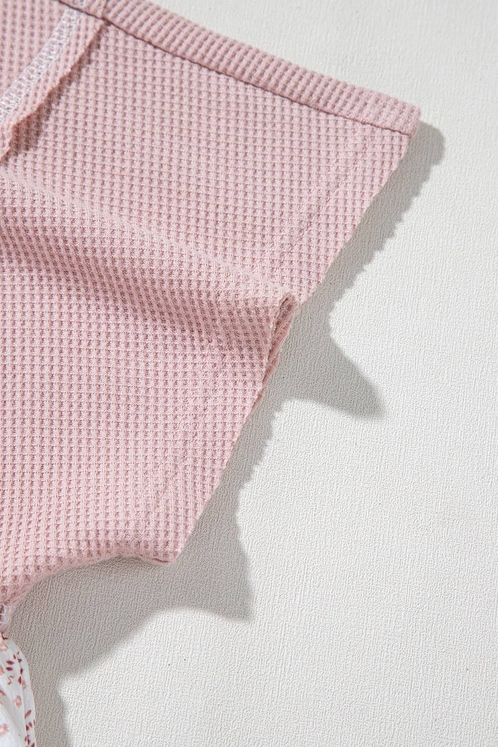 - This top features a floral crinkled patchwork with waffle knit fabric.