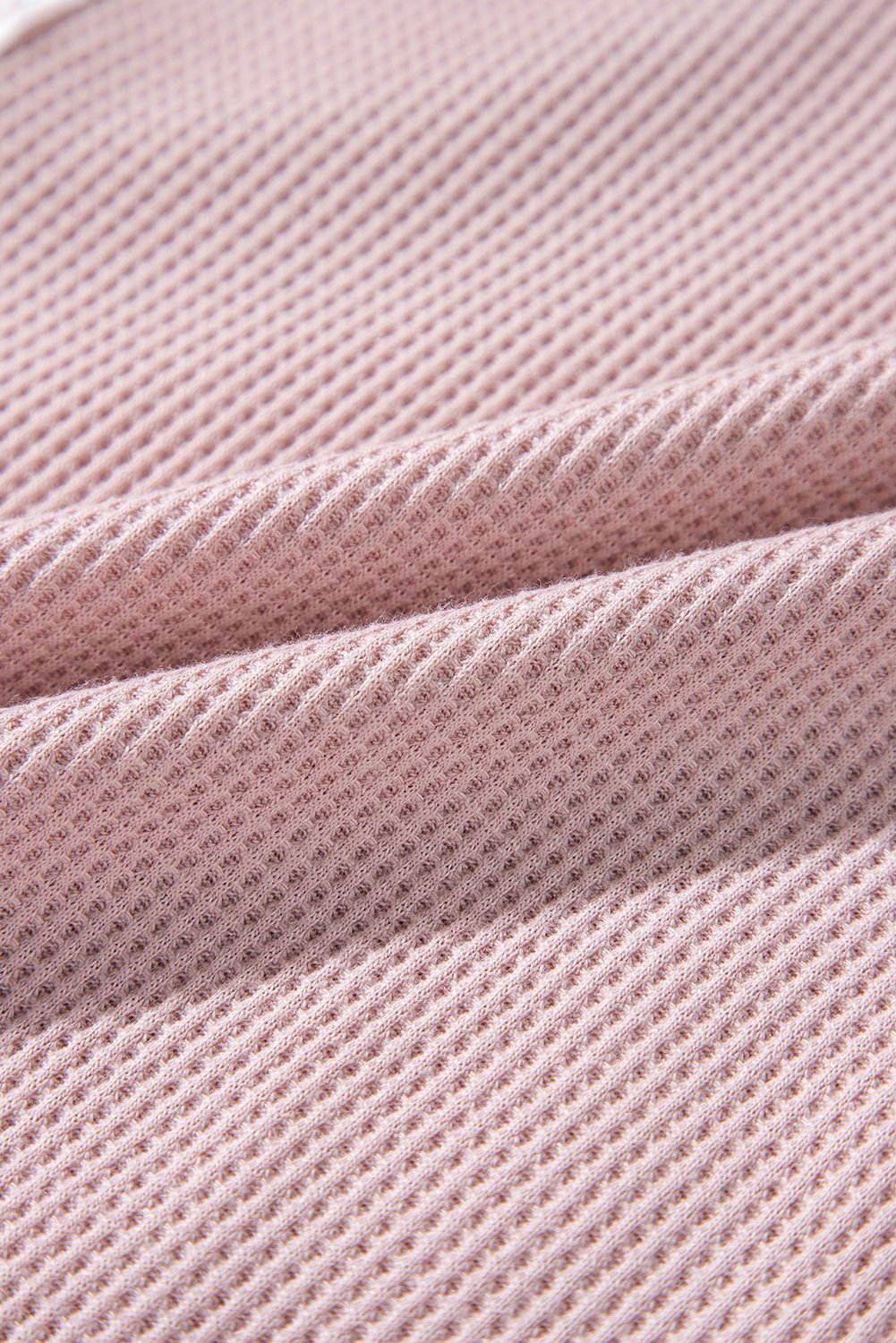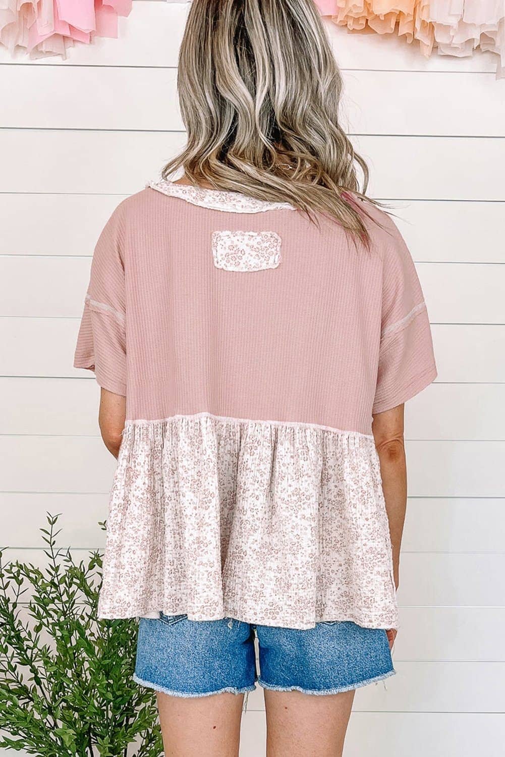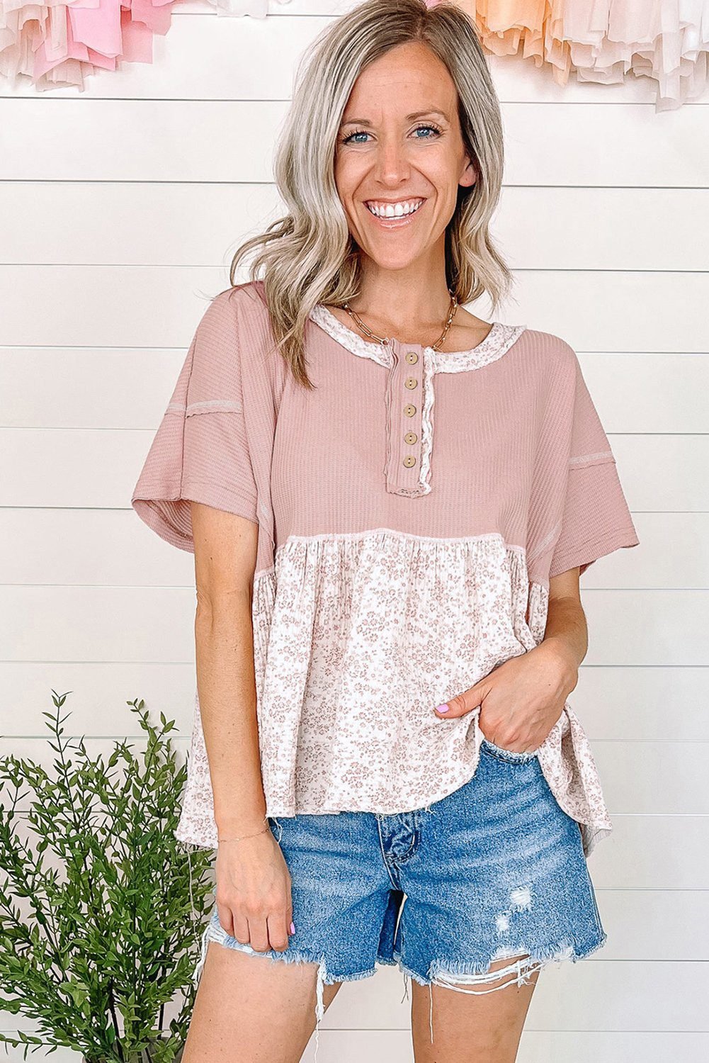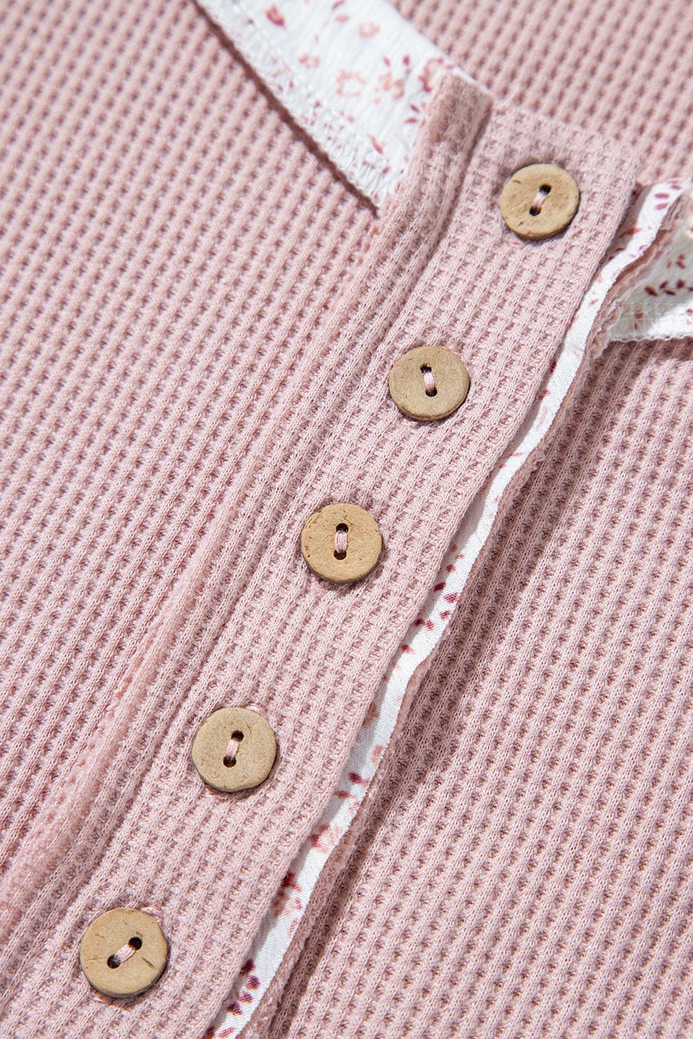 - This top features a floral crinkled patchwork with waffle knit fabric.