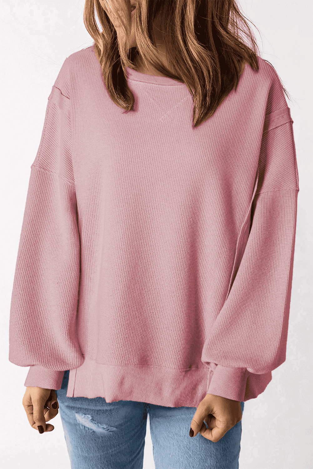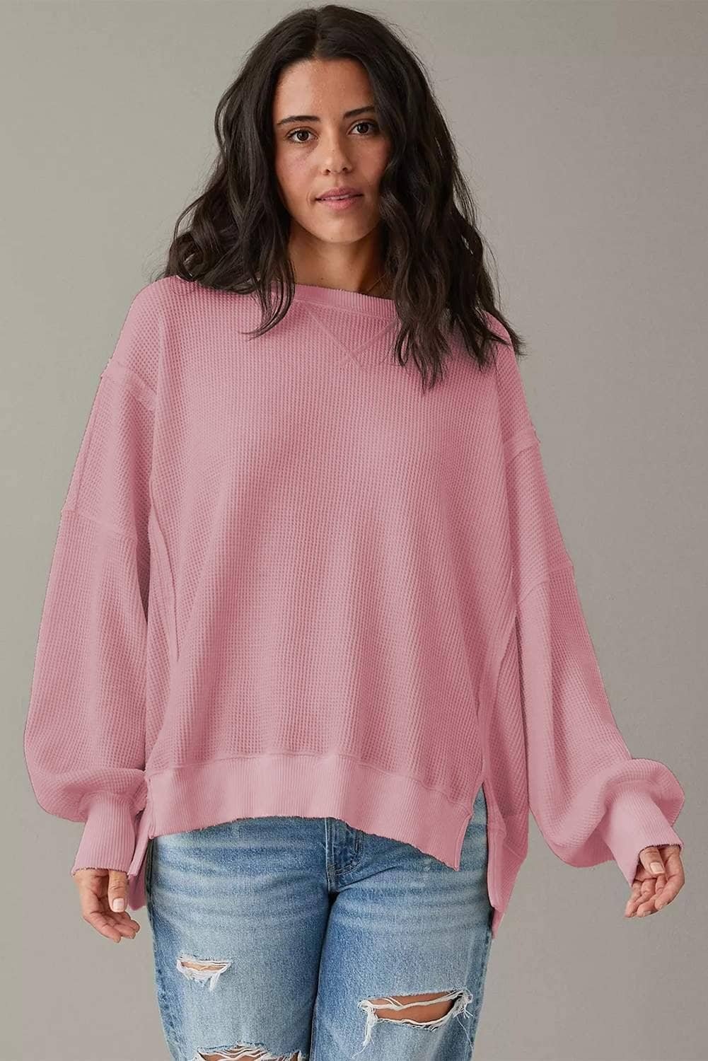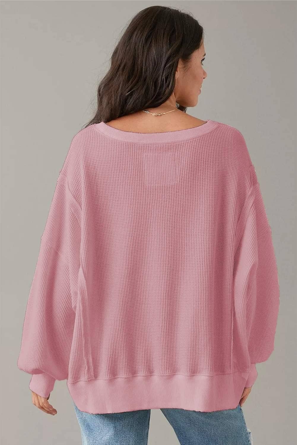 - This waffle knit sweatshirt is perfect for a cozy and stylish look.