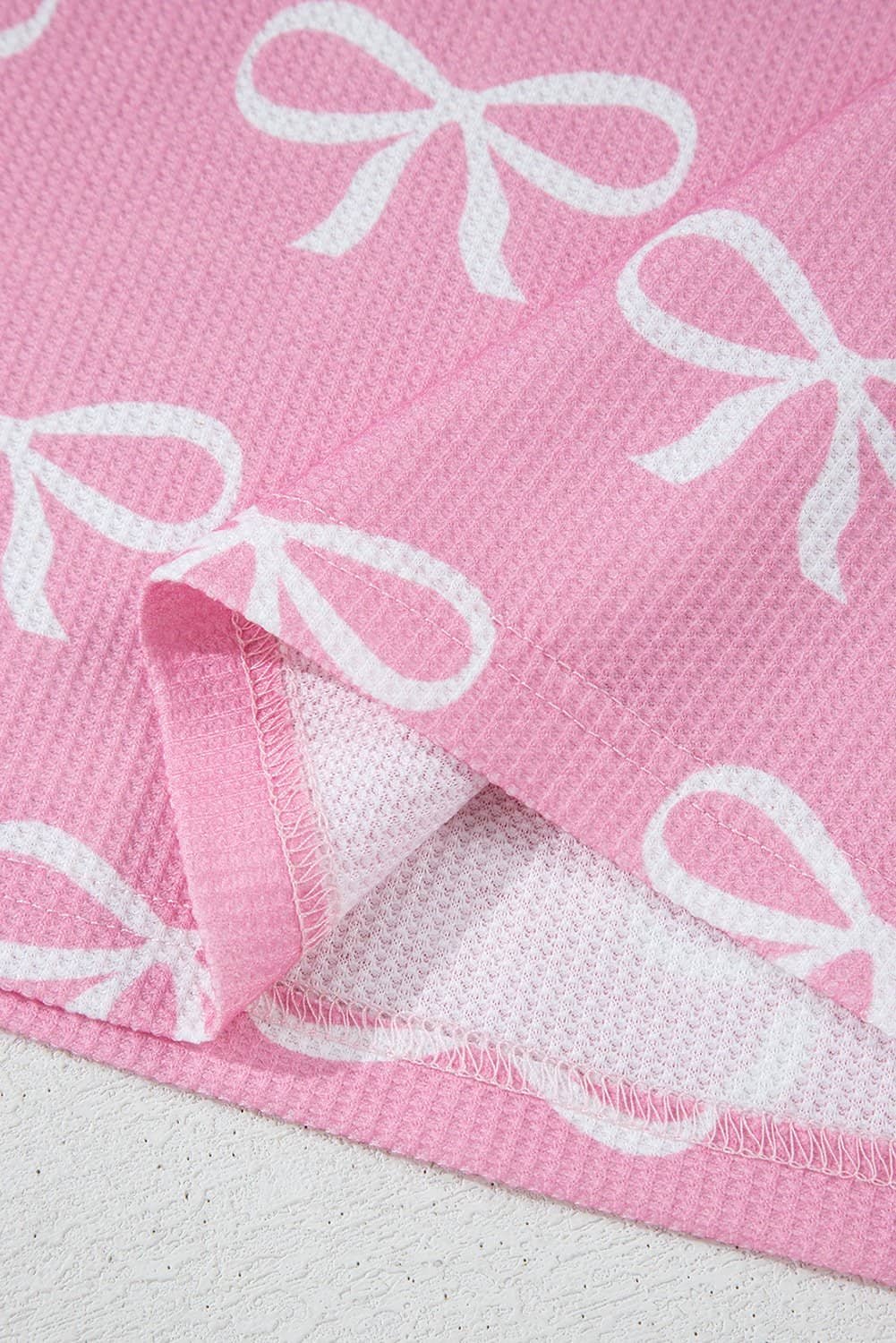 Enjoy the cozy texture of waffle knit fabric, offering a soft and textured feel.