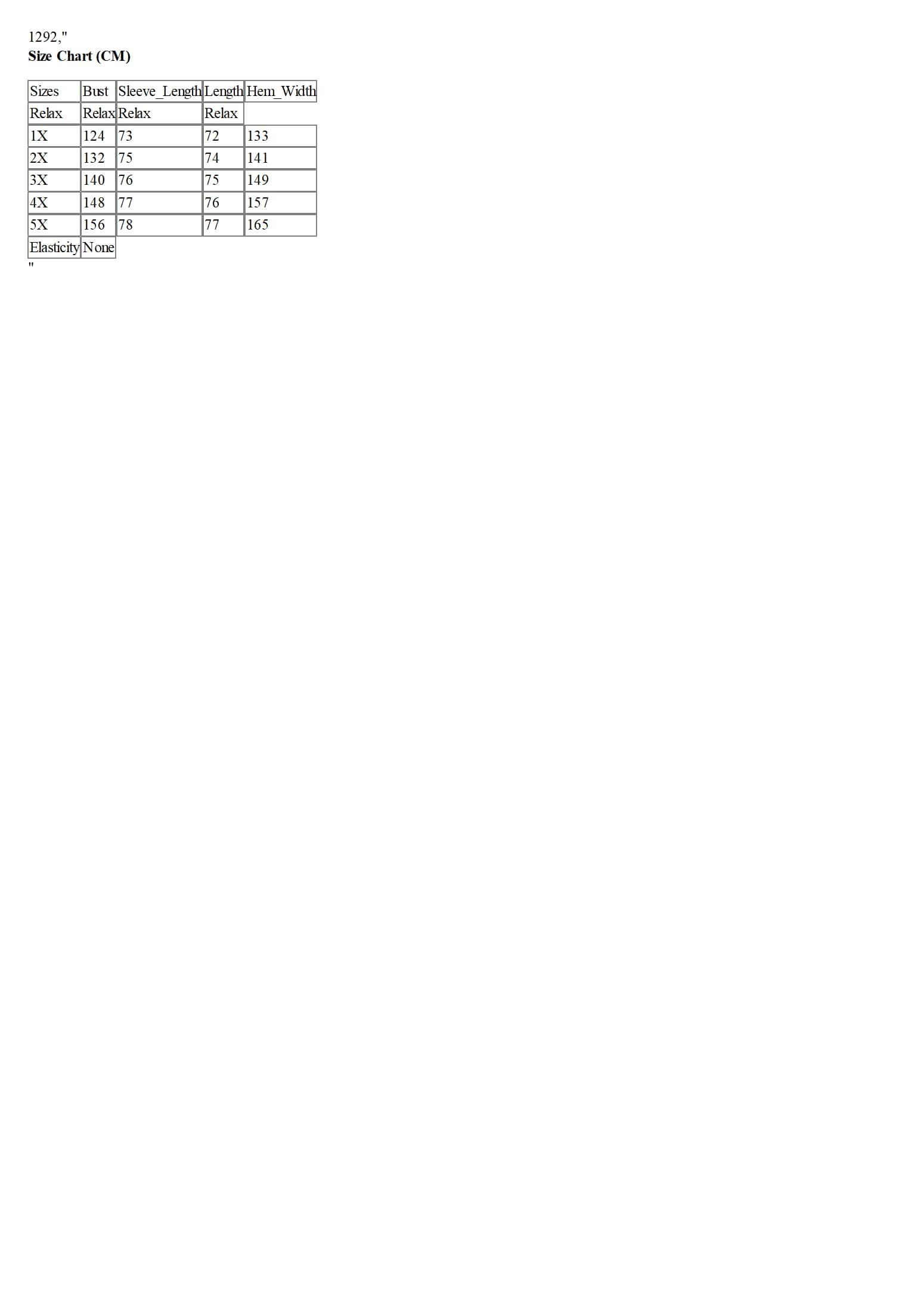 Sizes | Bust | Sleeve_Length | Length | Hem_Width |