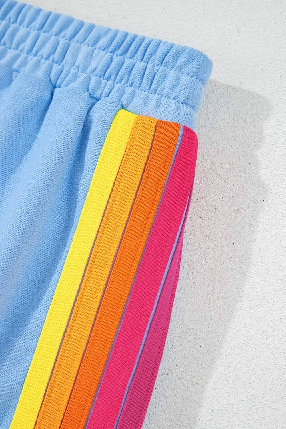 The set comes with coordinating shorts creating a cohesive look that’s ready for warm weather or indoor lounging.