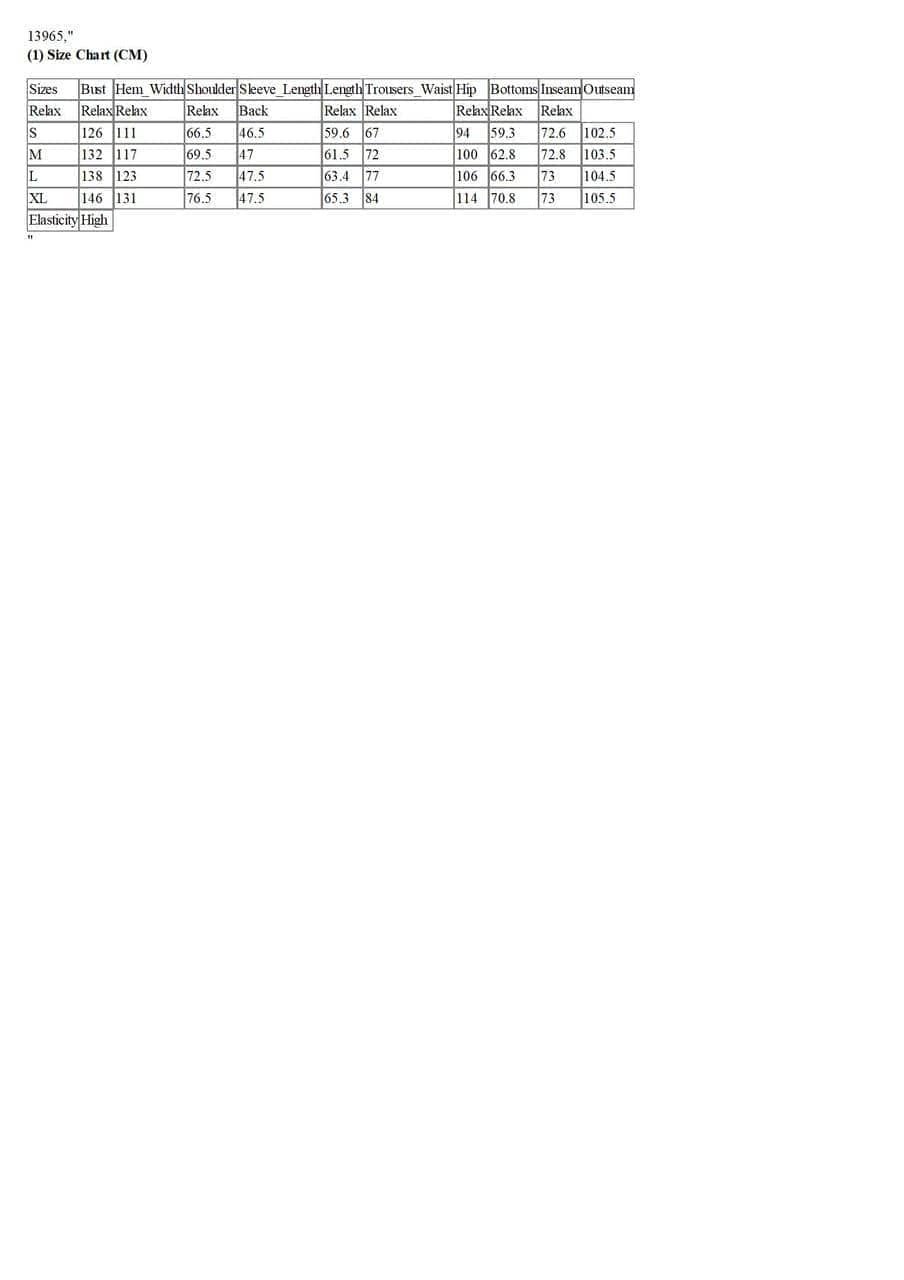 Sizes | Bust | Hem_Width | Shoulder | Sleeve_Length | Length | Trousers_Waist | Hip | Bottoms | Inseam | Outseam |