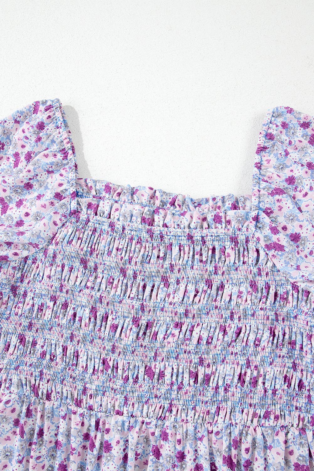 The square neck and short bubble sleeves add extra feminine flair.