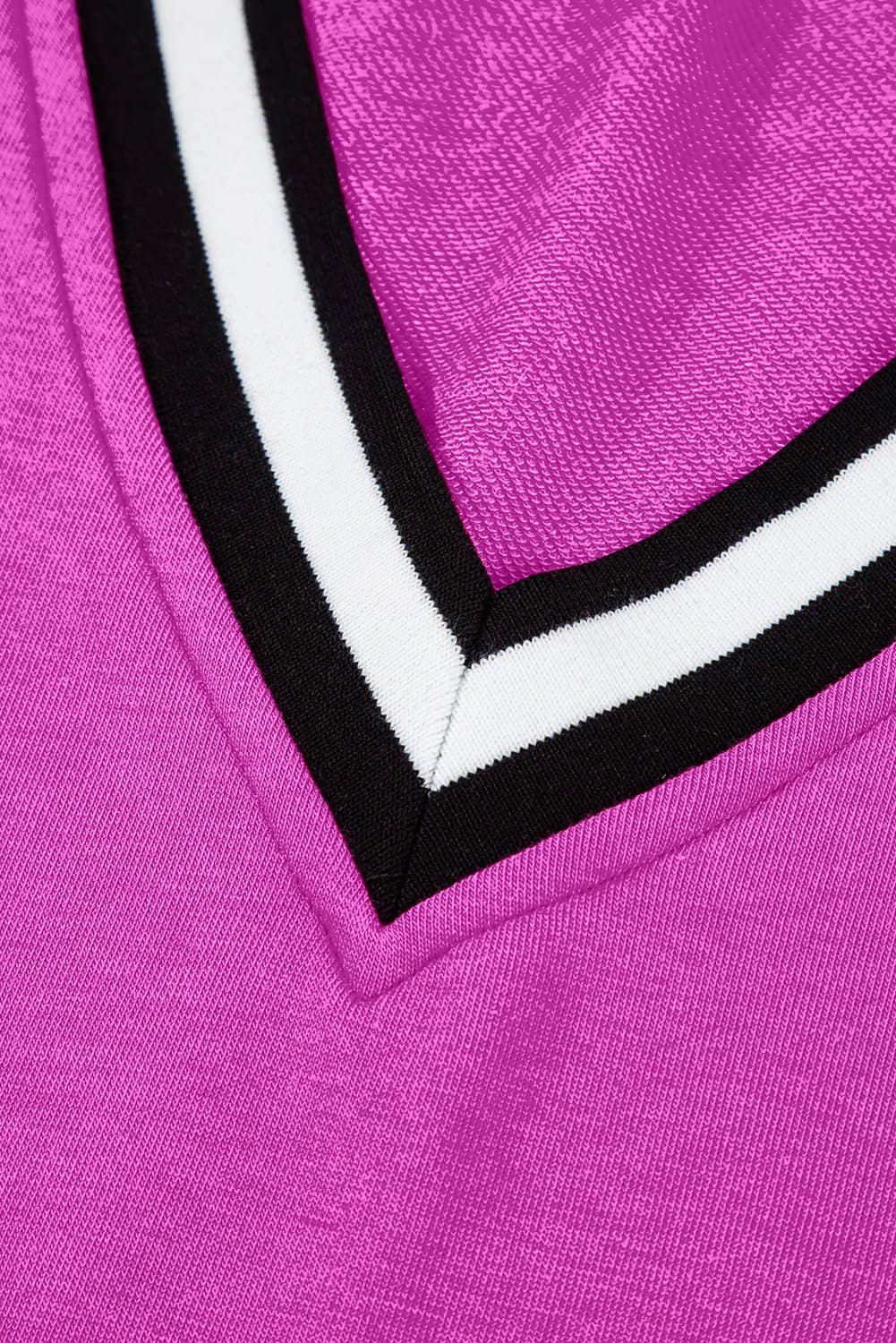 Purple Orchid Color Contrast Trim V Neck Shift Sleeveless Mini Dress