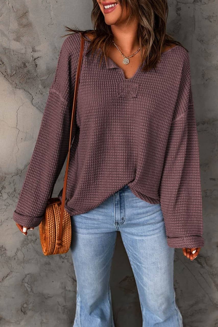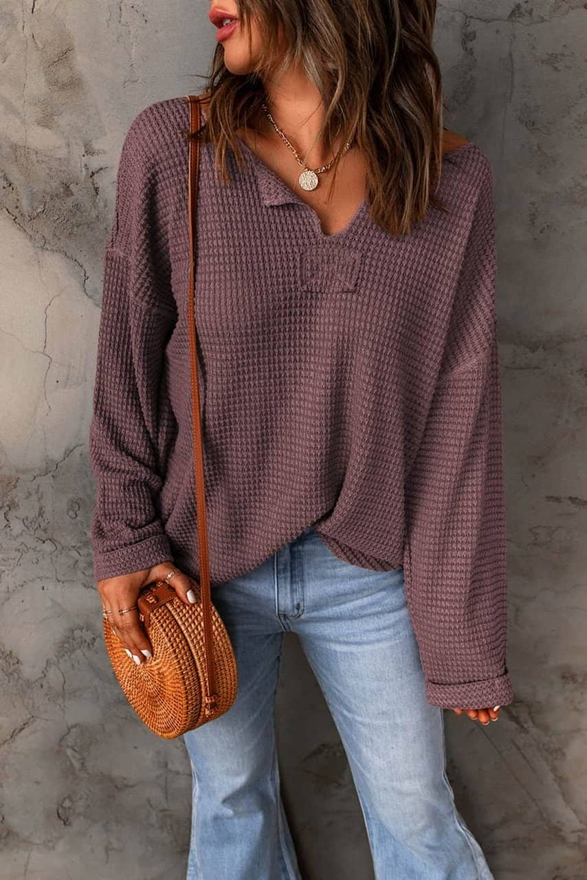 - This waffle knit top is lightweight and comfy for a casual daily wear