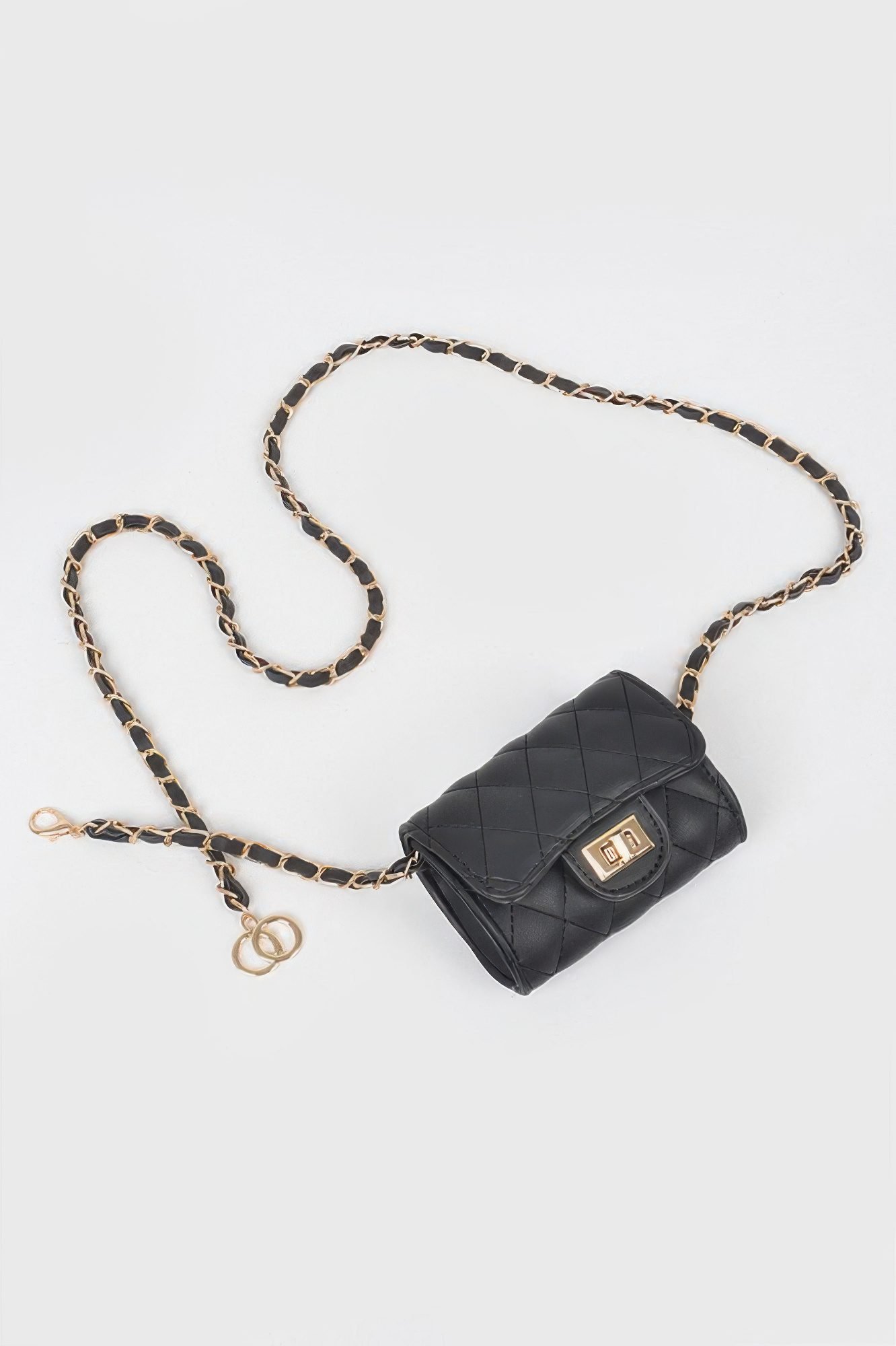 Chic and compact, the Quilted Mini Bag with Chain Belt offers a modern twist on classic elegance. Crafted from smooth faux leather with quilted detailing, this bag doubles as a belt bag or mini purse thanks to its adjustable chain strap. Its sleek profile and polished hardware make it a standout accessory for day or night. Perfect for keeping small essentials close, it’s designed for versatility and hands-free style.