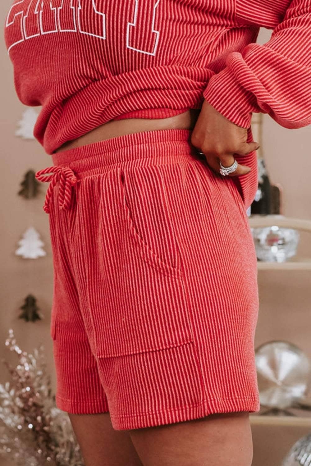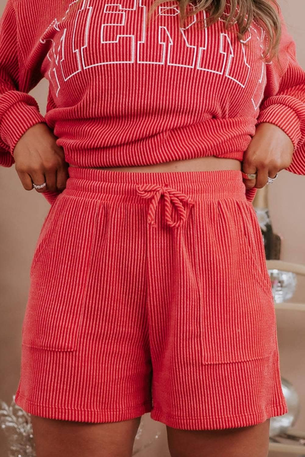 - The plus-size shorts set with “MERRY” pattern is a festive choice for the holiday season.