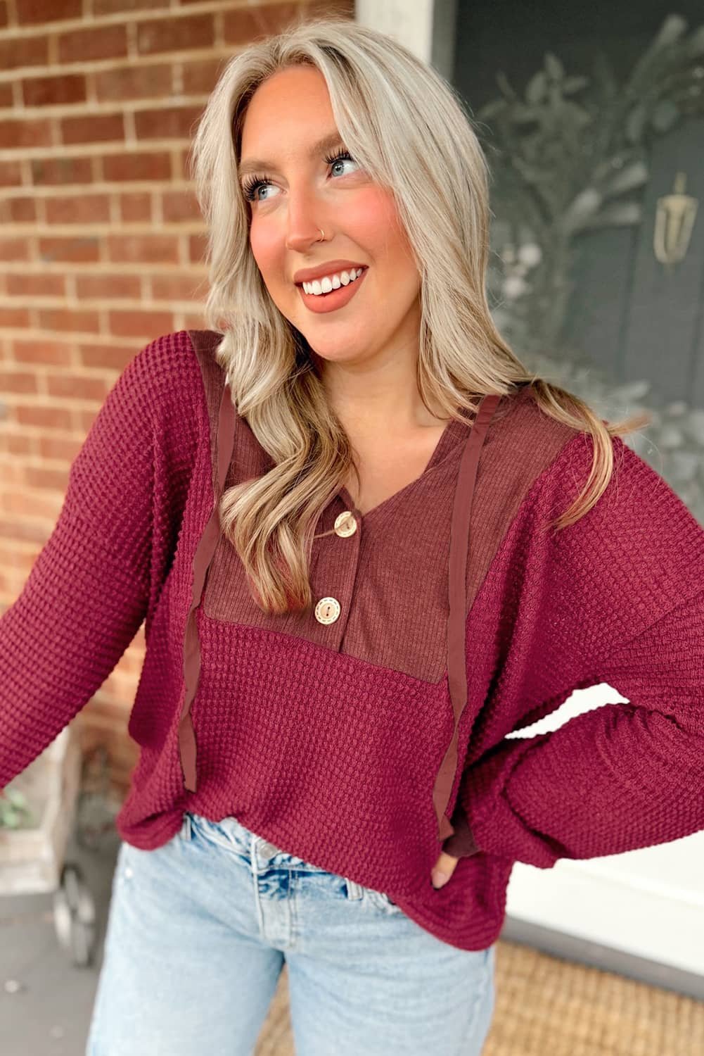 - This waffle top is very stylish ribbed fabric patchwork.