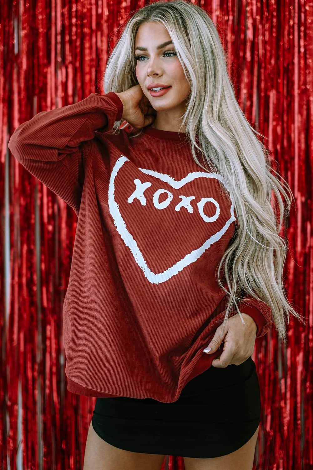 XOXO Heart Shape Graphic Corded Sweatshirt