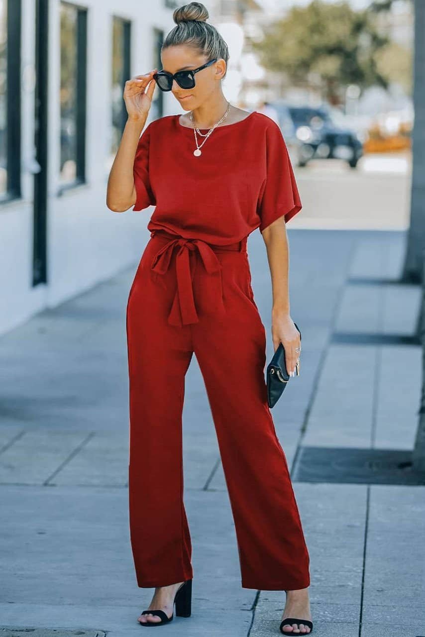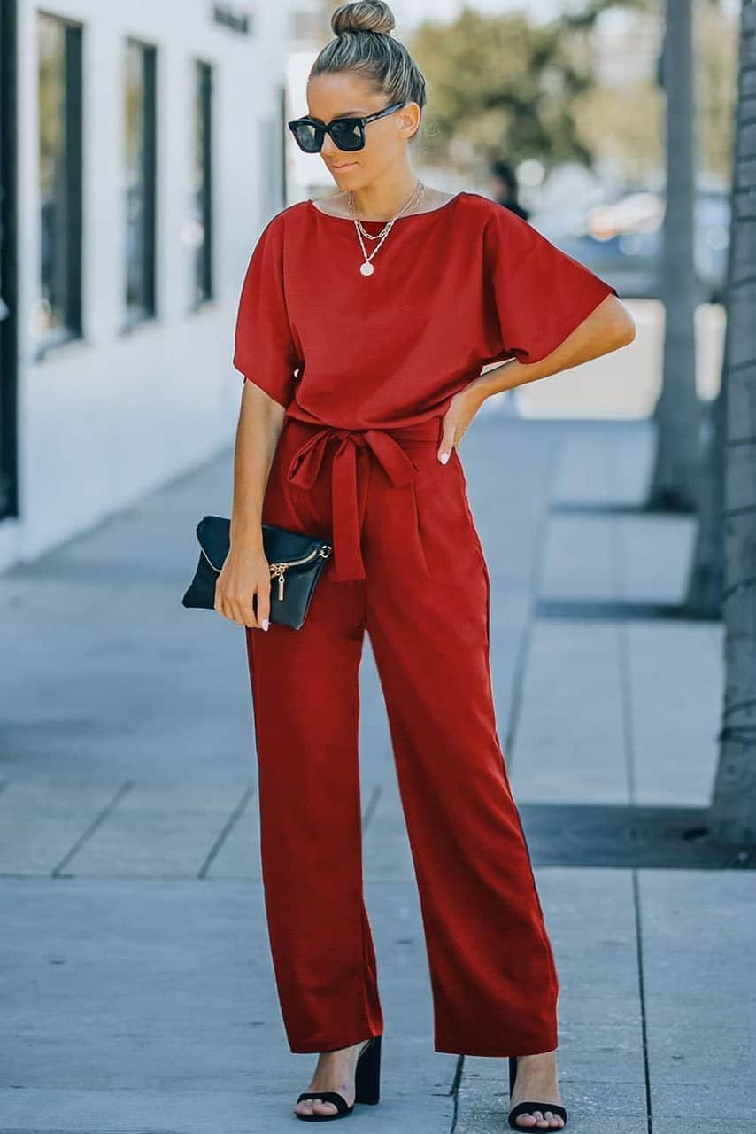 - Wear this jumpsuit with barely there heels and a red lippy to get a gorgeous look