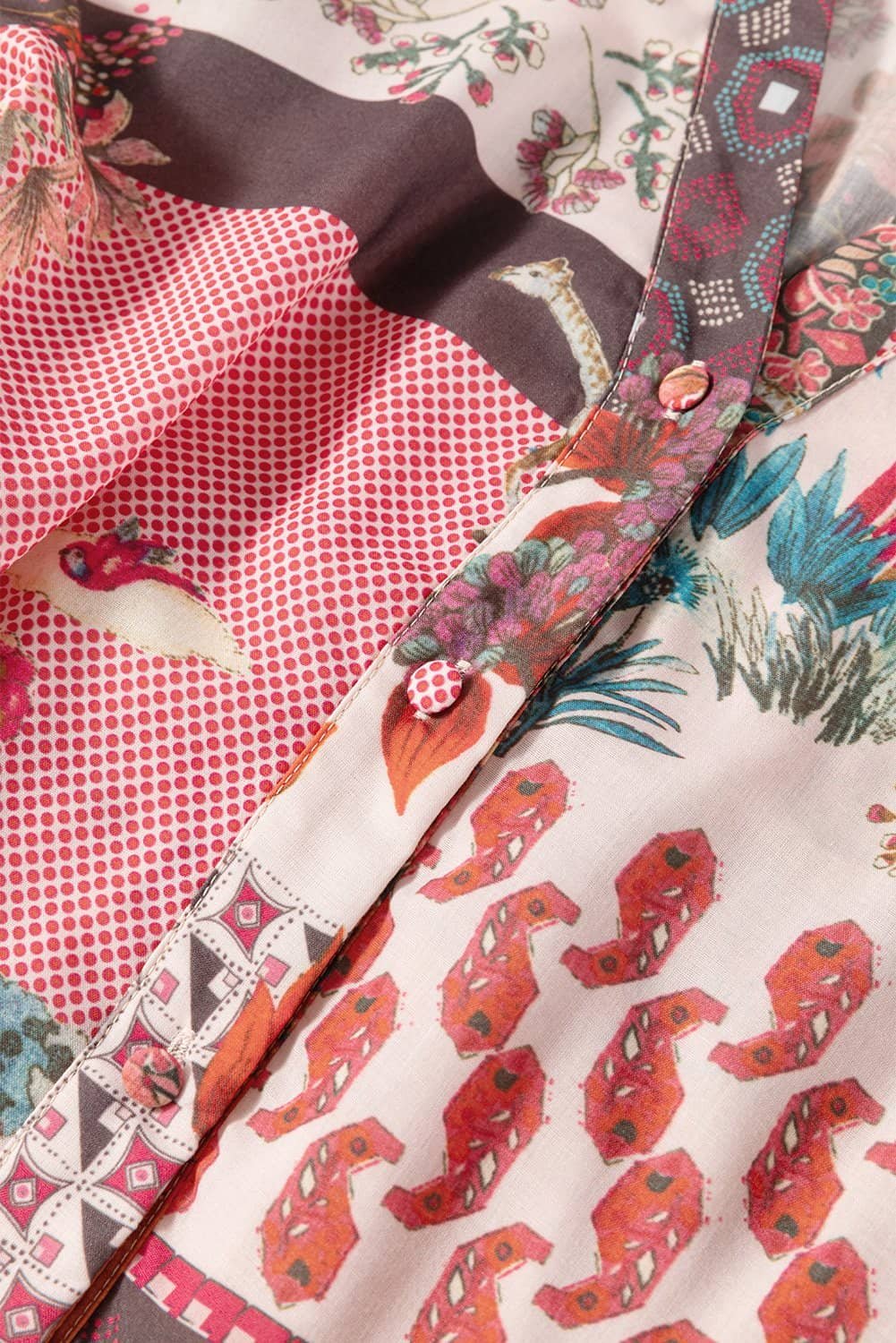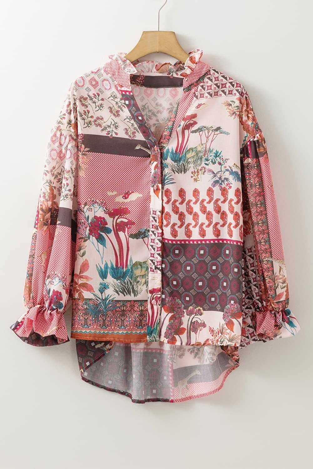 • The shirt embodies a bohemian aesthetic with its mixed pattern and free-spirited style